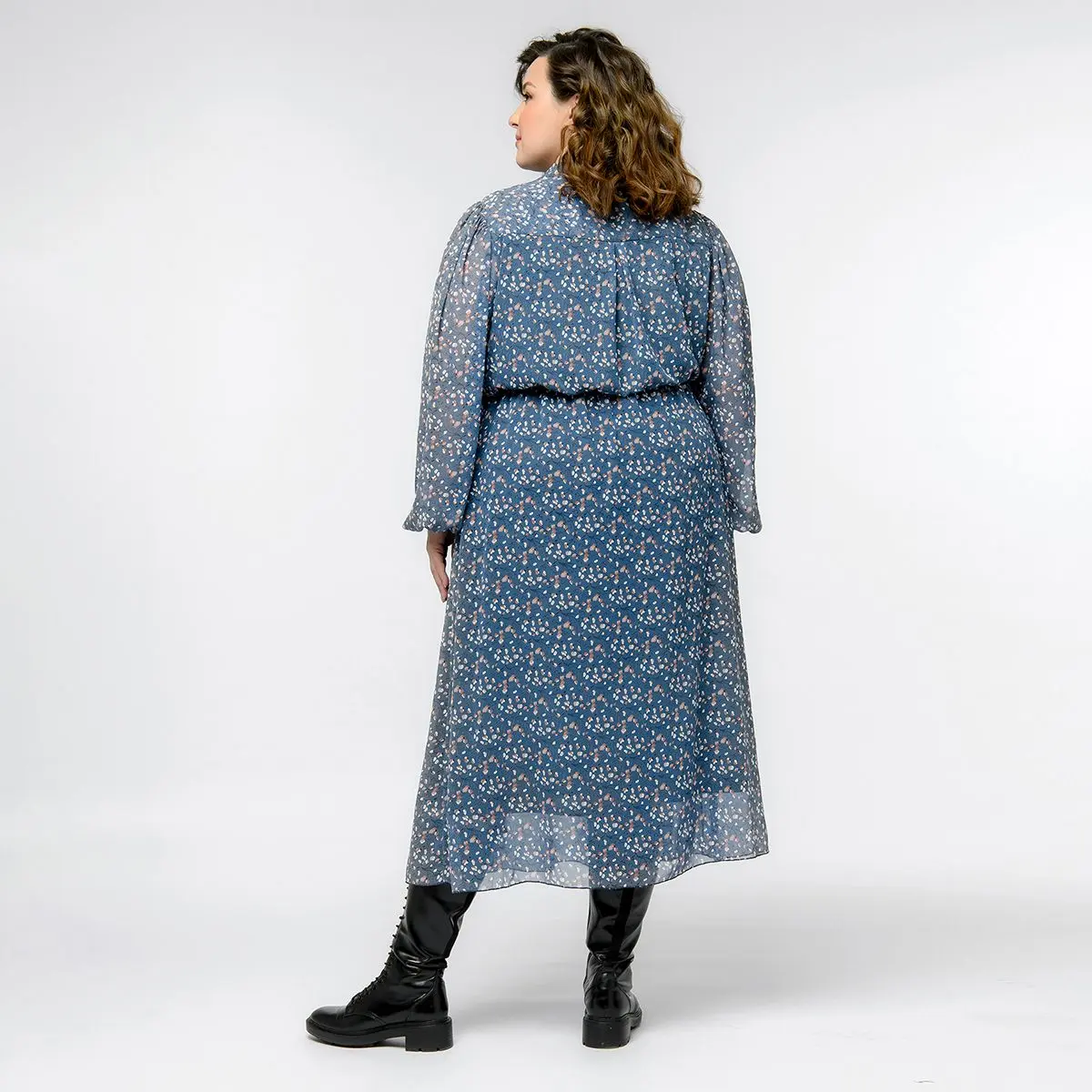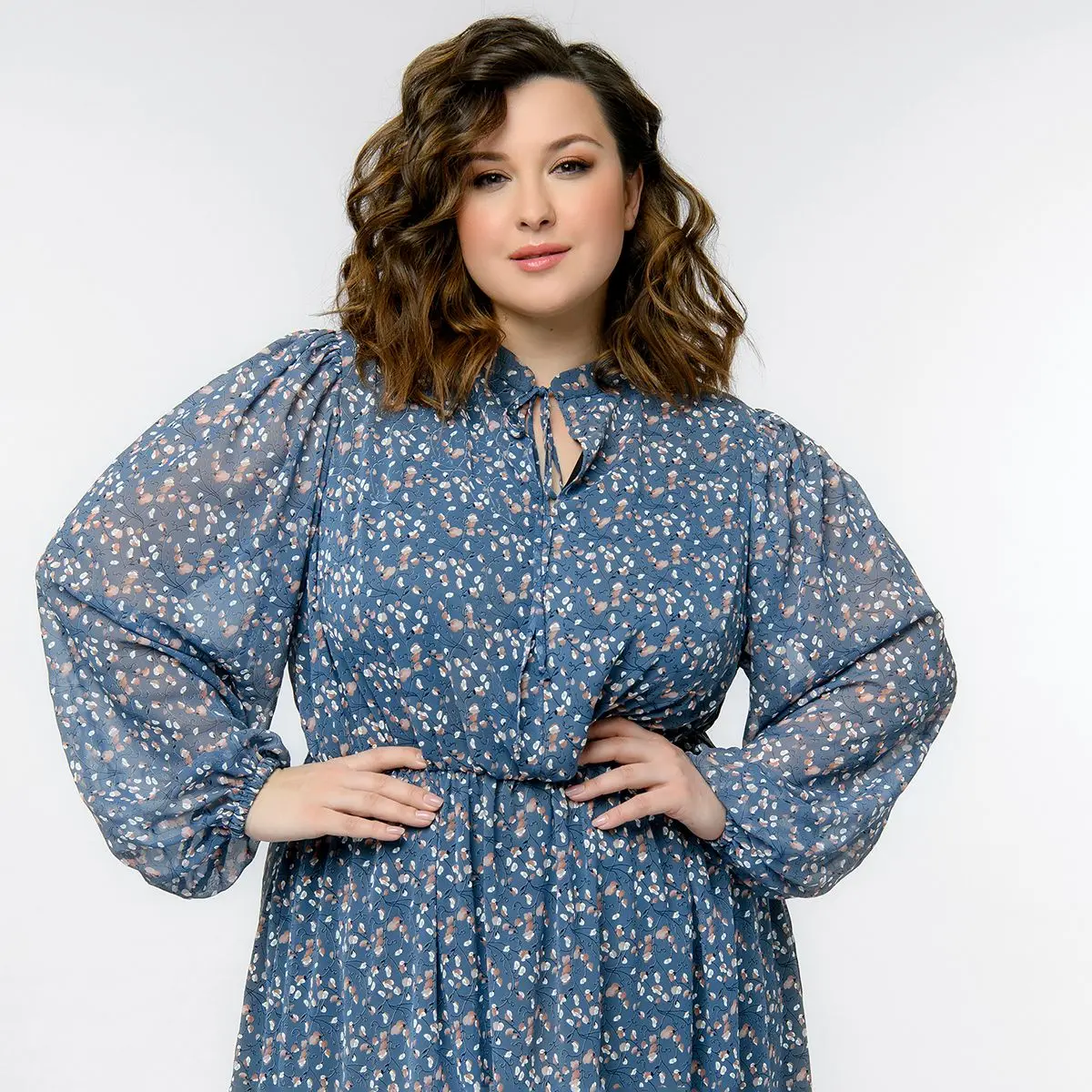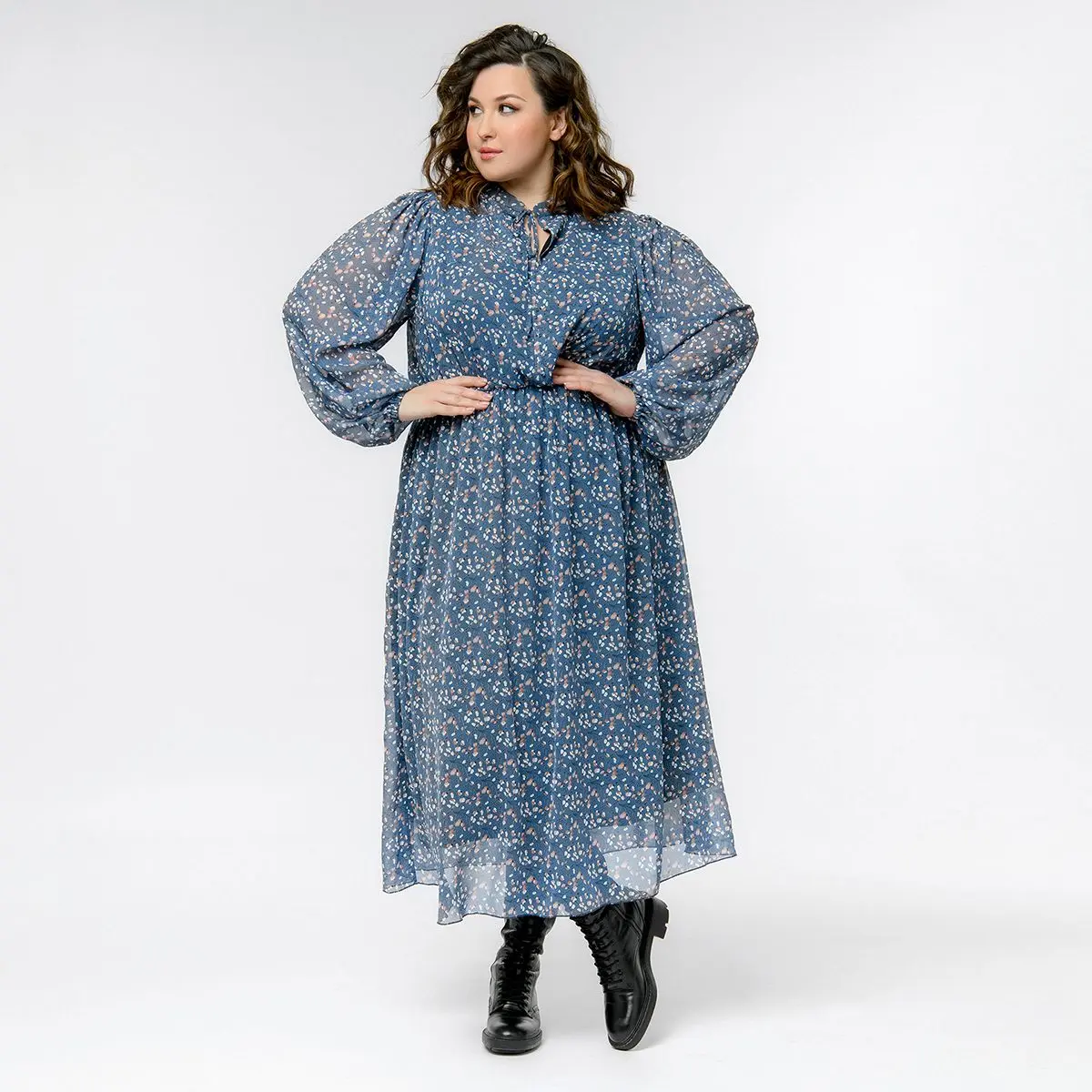 > Платье из шифона с воротником "стоечка", принт "теплый серый"