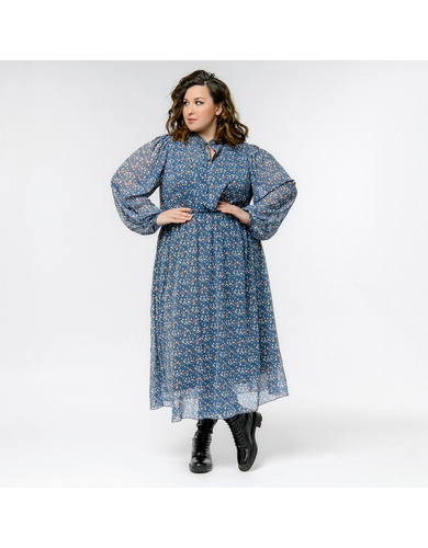 Изысканное платье из шифона с длиной миди. По горловине воротник стоечка. По центру переда стоечка завязывается на шнурочки из основной ткани.