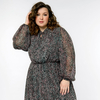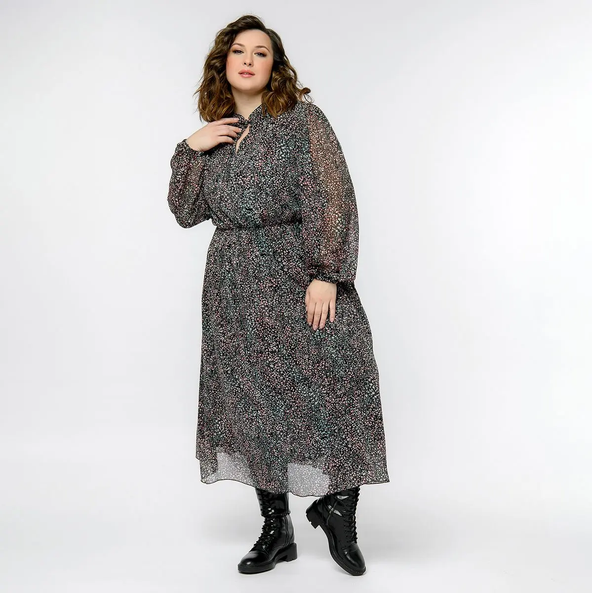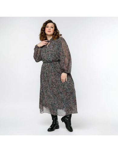 > Платье из шифона с воротником "стоечка", мелкий принт на черном