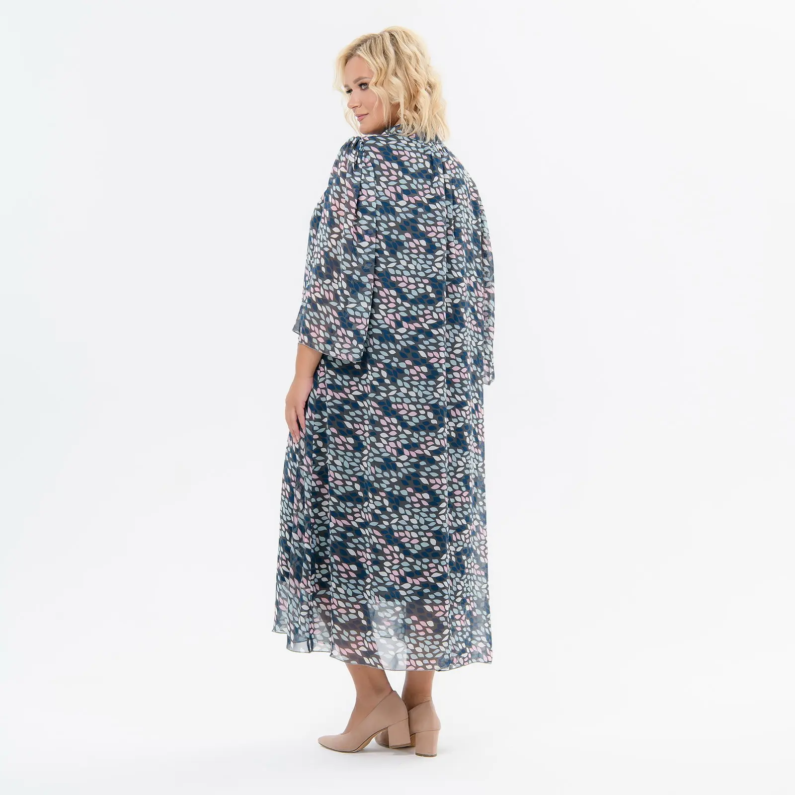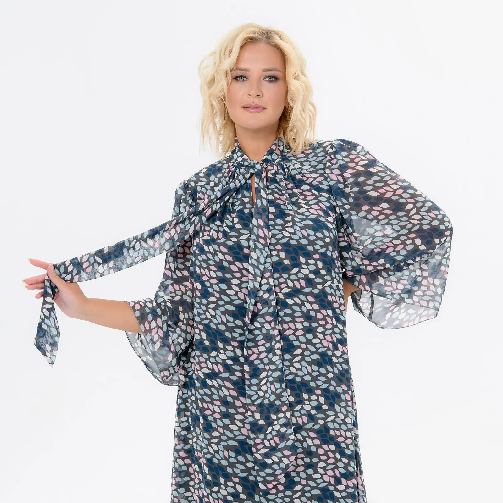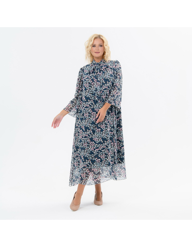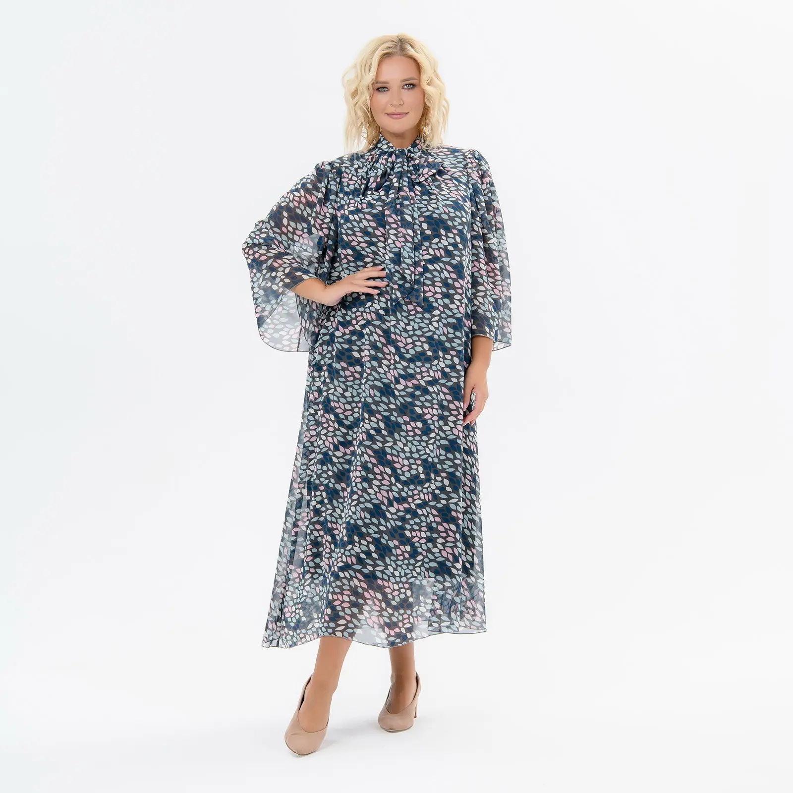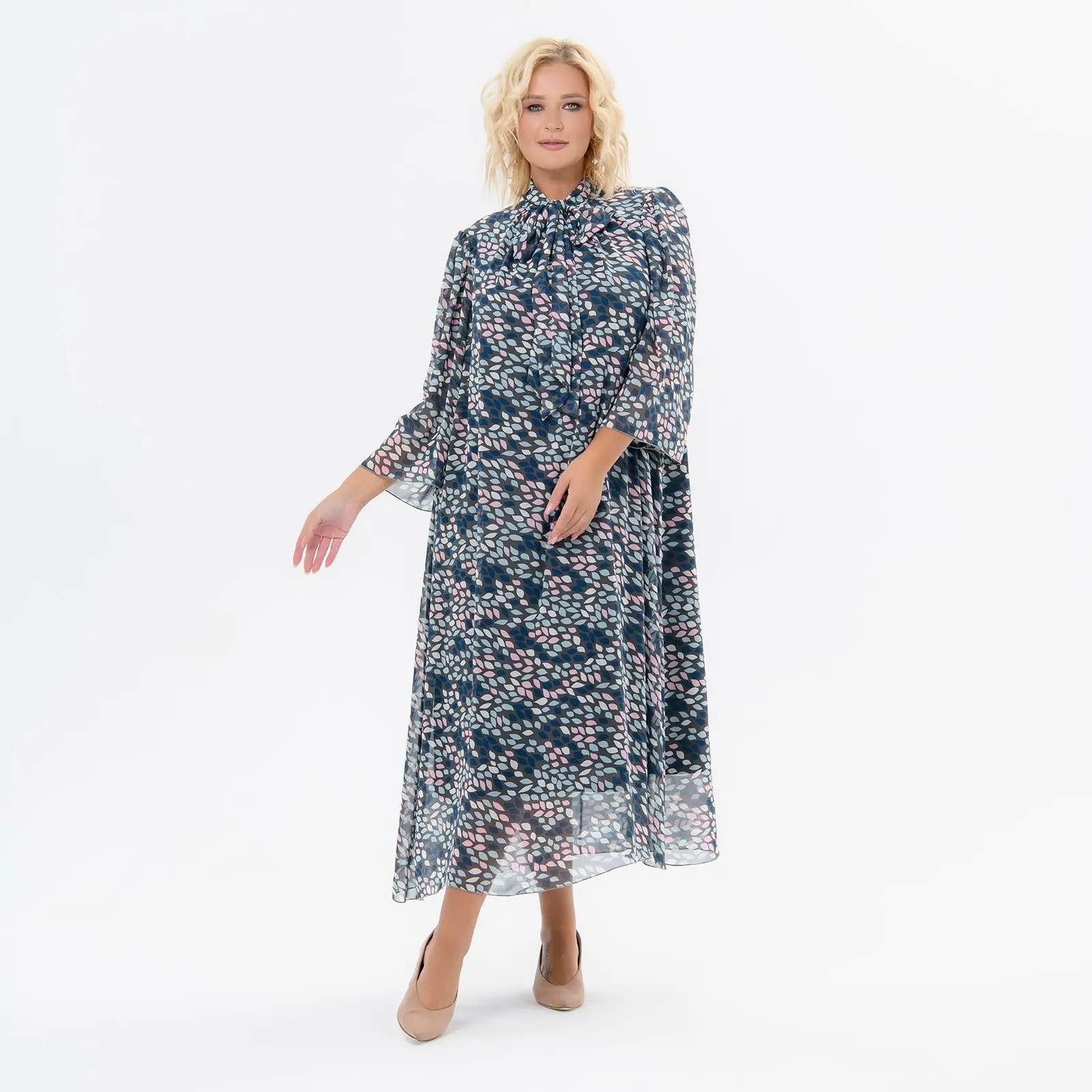 Изысканное платье А-силуэта.из шифона длиной миди. По горловине воротник "аскот", завязывающийся в красивый бант.