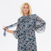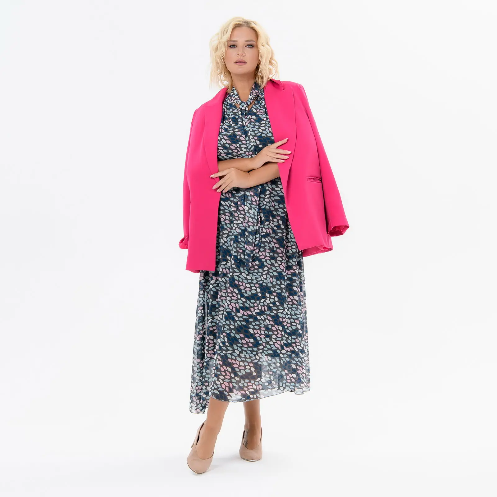 > Платье А-силуэта, шифоновое, с воротником "аскот", принт мятно-пудровый