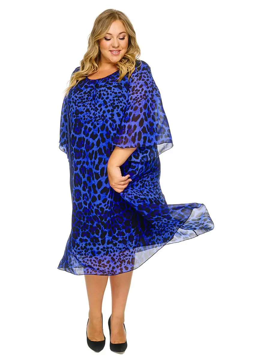 Воздушное платье силуэта трапеция из шифона с расклешенным рукавом, по горловине защипы. Данная модель за счет кроя прекрасно скрывает нюансы фигуры