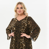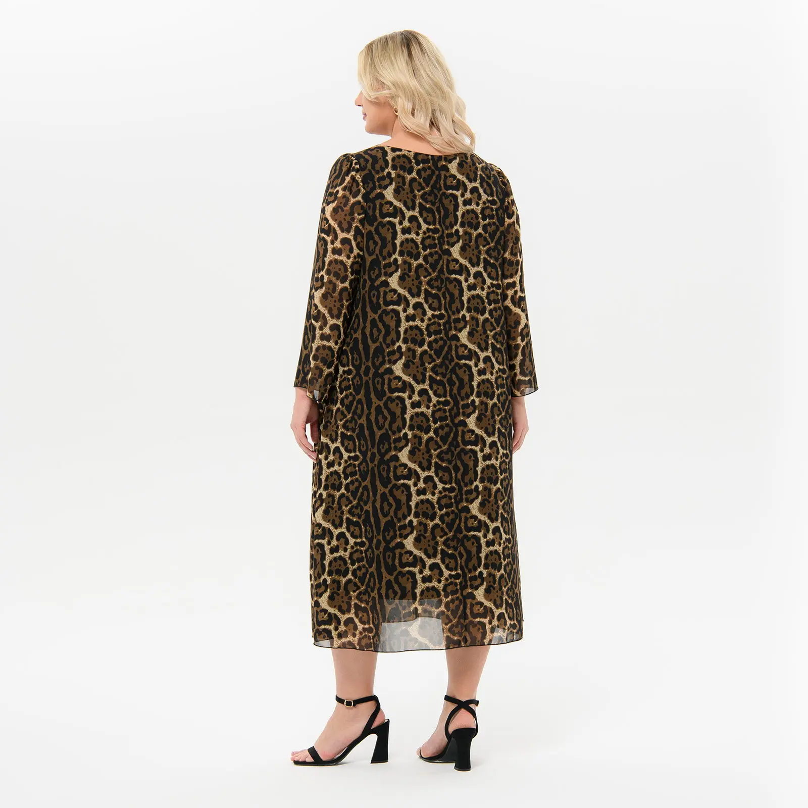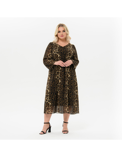 Центральный шов по переду и V-вырез зрительно вытягивают силуэт.
