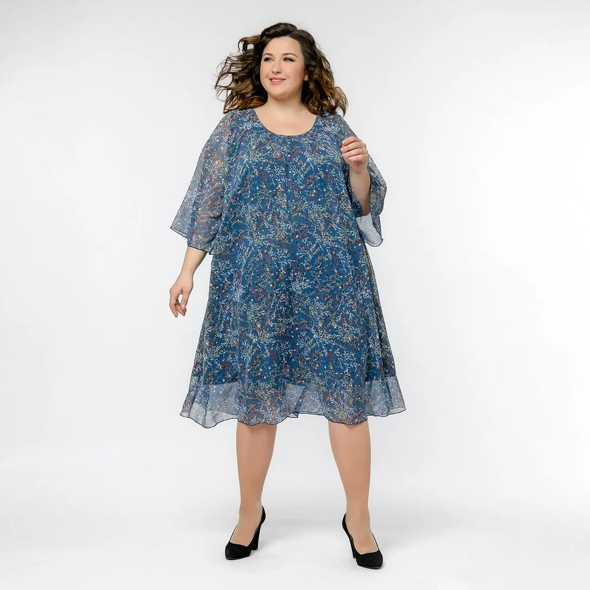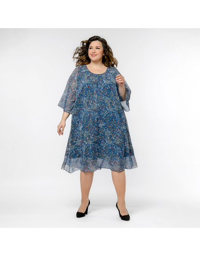 Воздушное платье силуэта трапеция из шифона с расклешенным рукавом. По горловине переда заложены защипы.