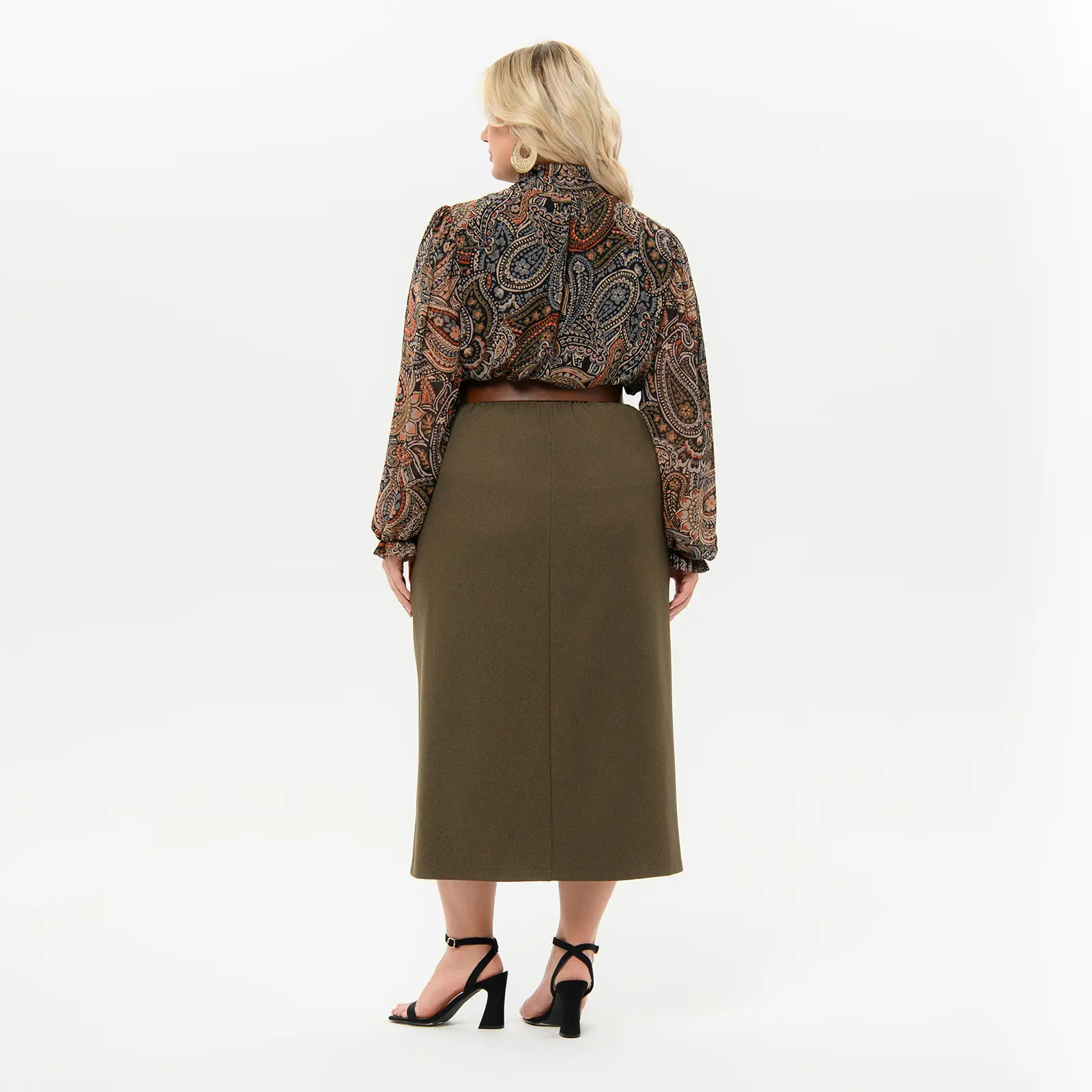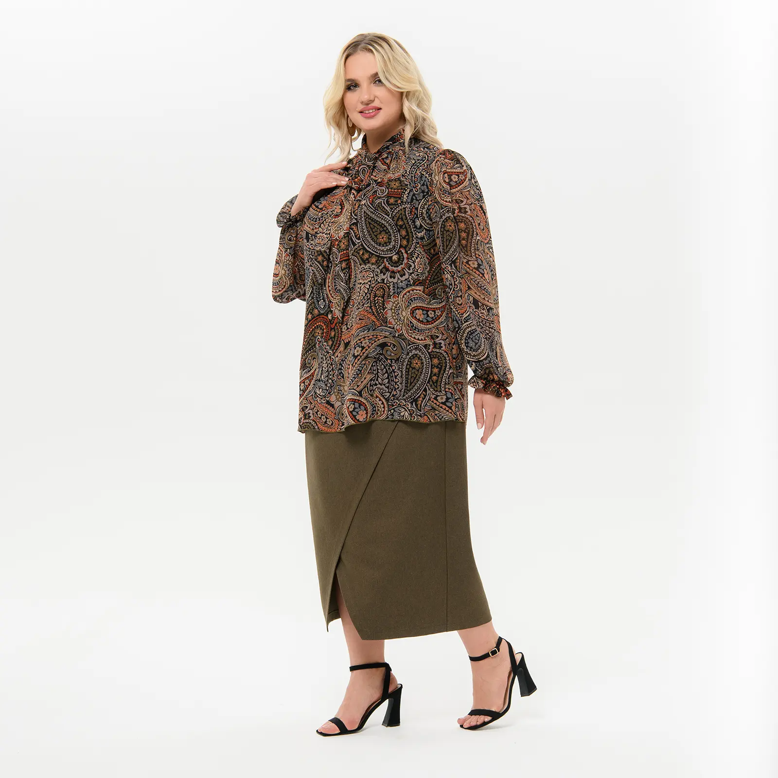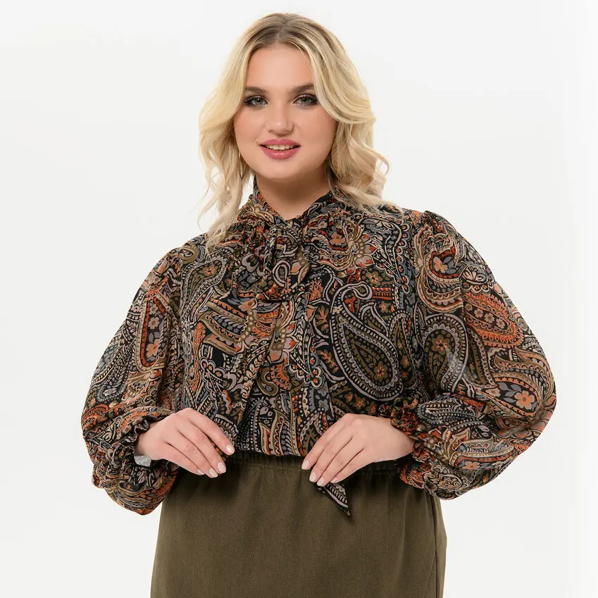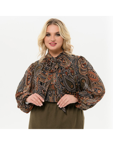 Блуза из шифона с воротником "аскот", принт "индийский"