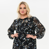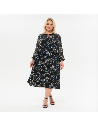> Платье комбинированное, основа "масло", рукава шифон-компаньон, черное с бирюзовыми цветами