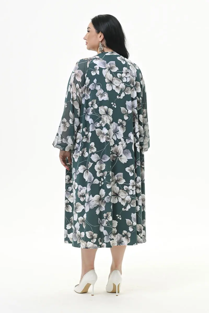Платье комбинированное, масло/шифон, изумрудное, принт цветочный