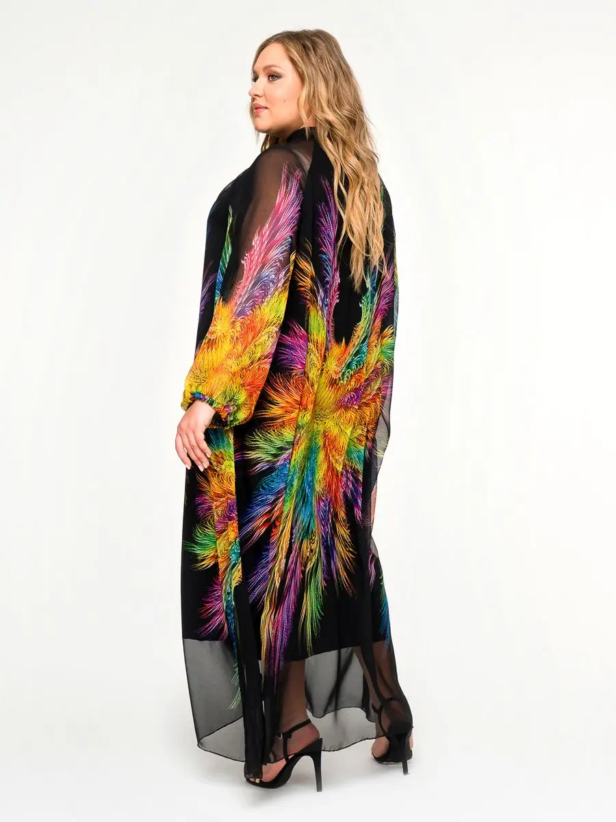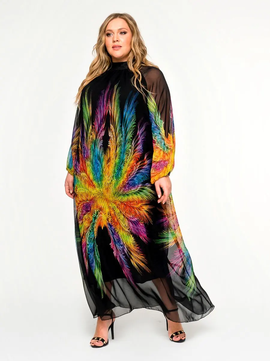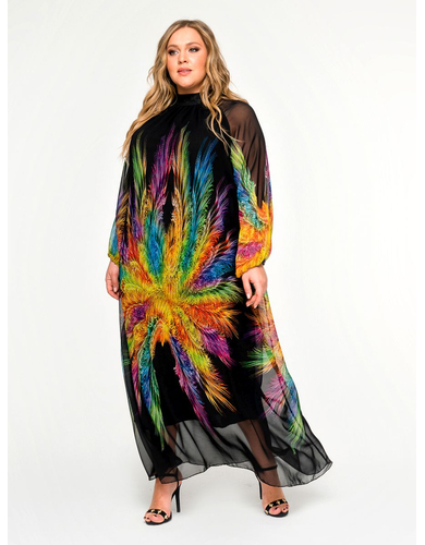 Воздушное и очень женственное платье с рукавом реглан. Модель выполнена из шифона на подкладе из эластичного трикотажа "масло". Воротник-стойка дополняется вырезом "капля" на спинке и двумя пуговицами. В нем Вы будете неотразимой на любом торжестве.