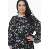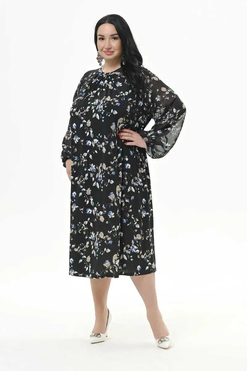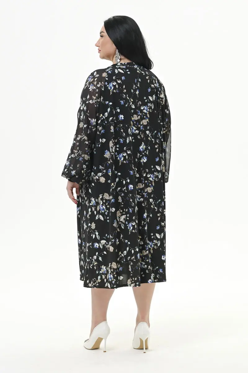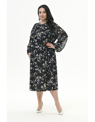 > Платье комбинированное, масло/шифон, черное с бирюзовыми цветами