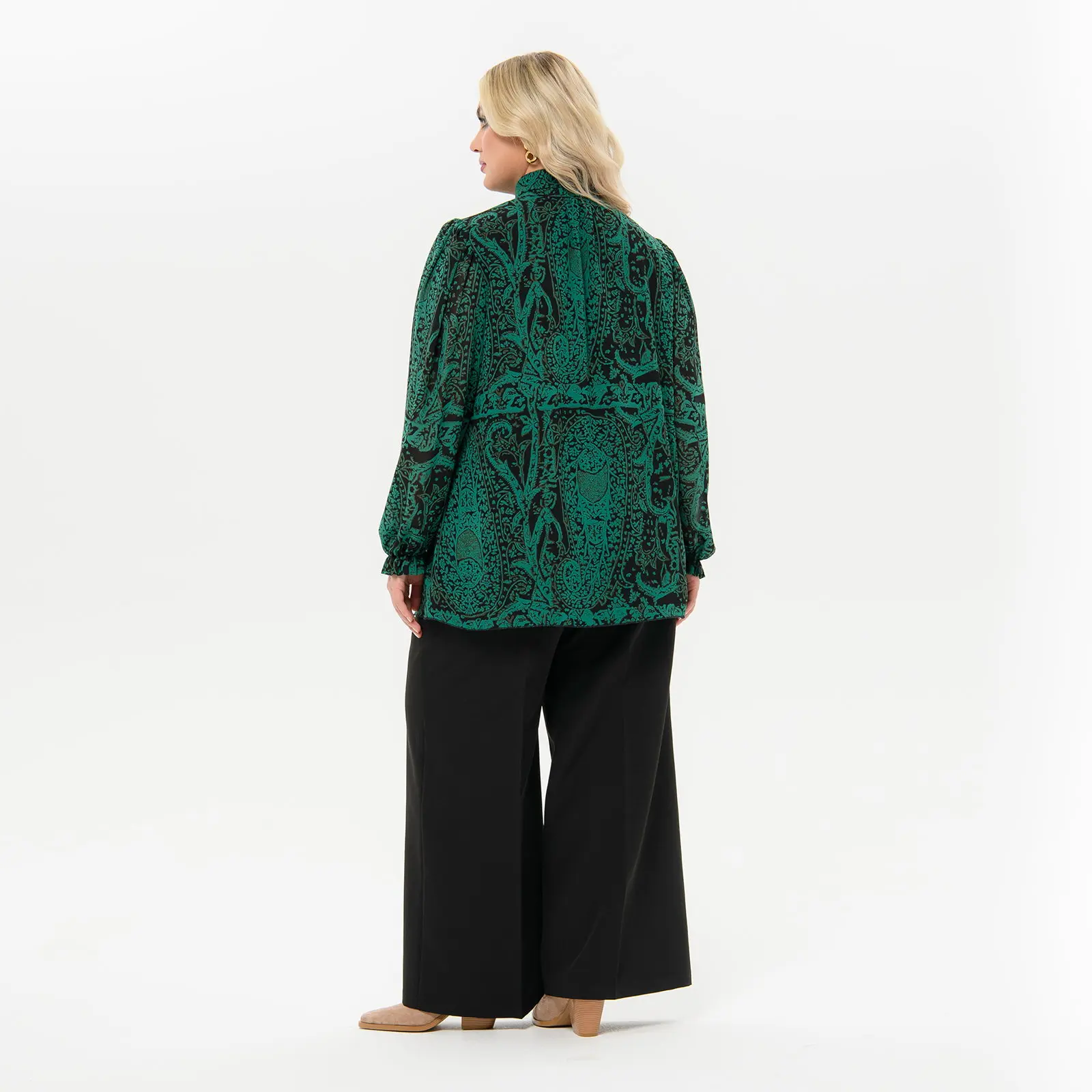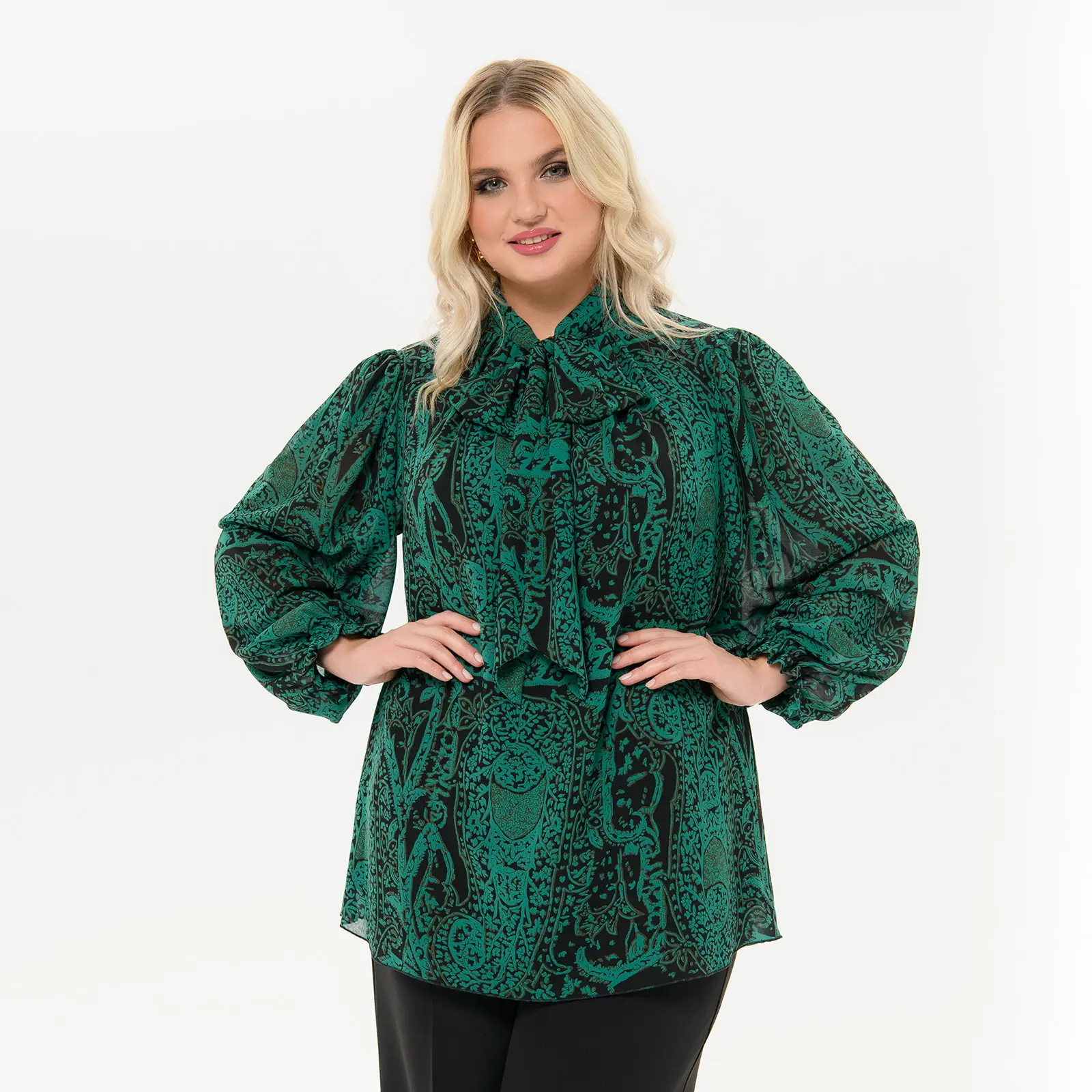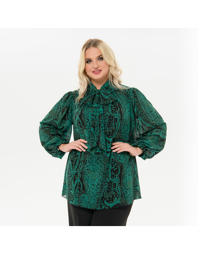 Блуза из шифона с воротником "аскот", принт "изумрудный"