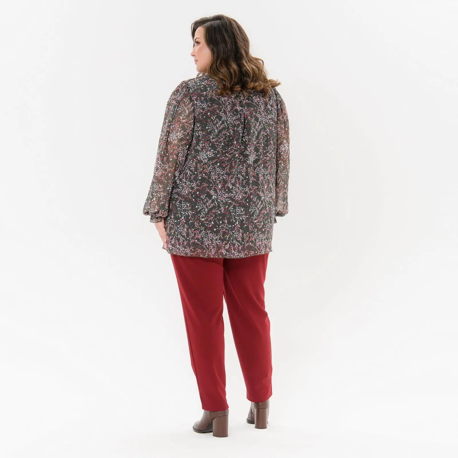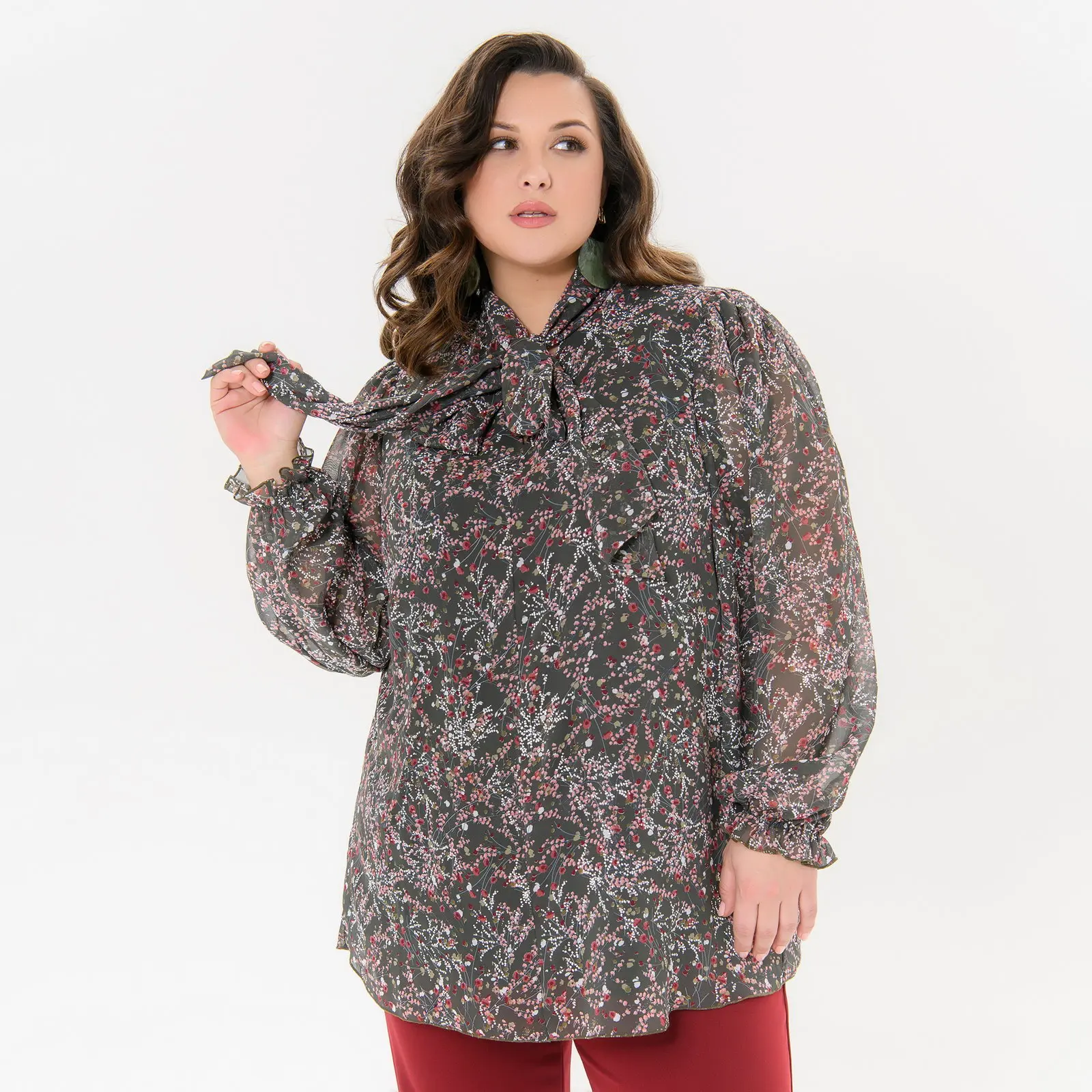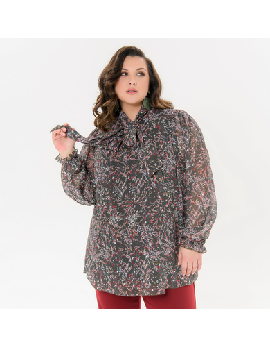 Блуза из шифона свободного силуэта. По горловине воротник - "аскот", это воротник стойка с удлиненными концами, завязывающимися на бант.