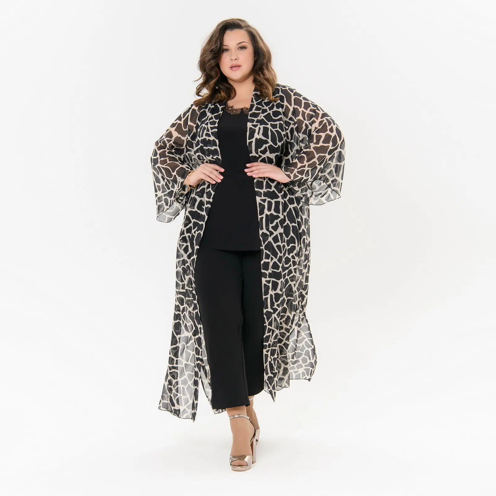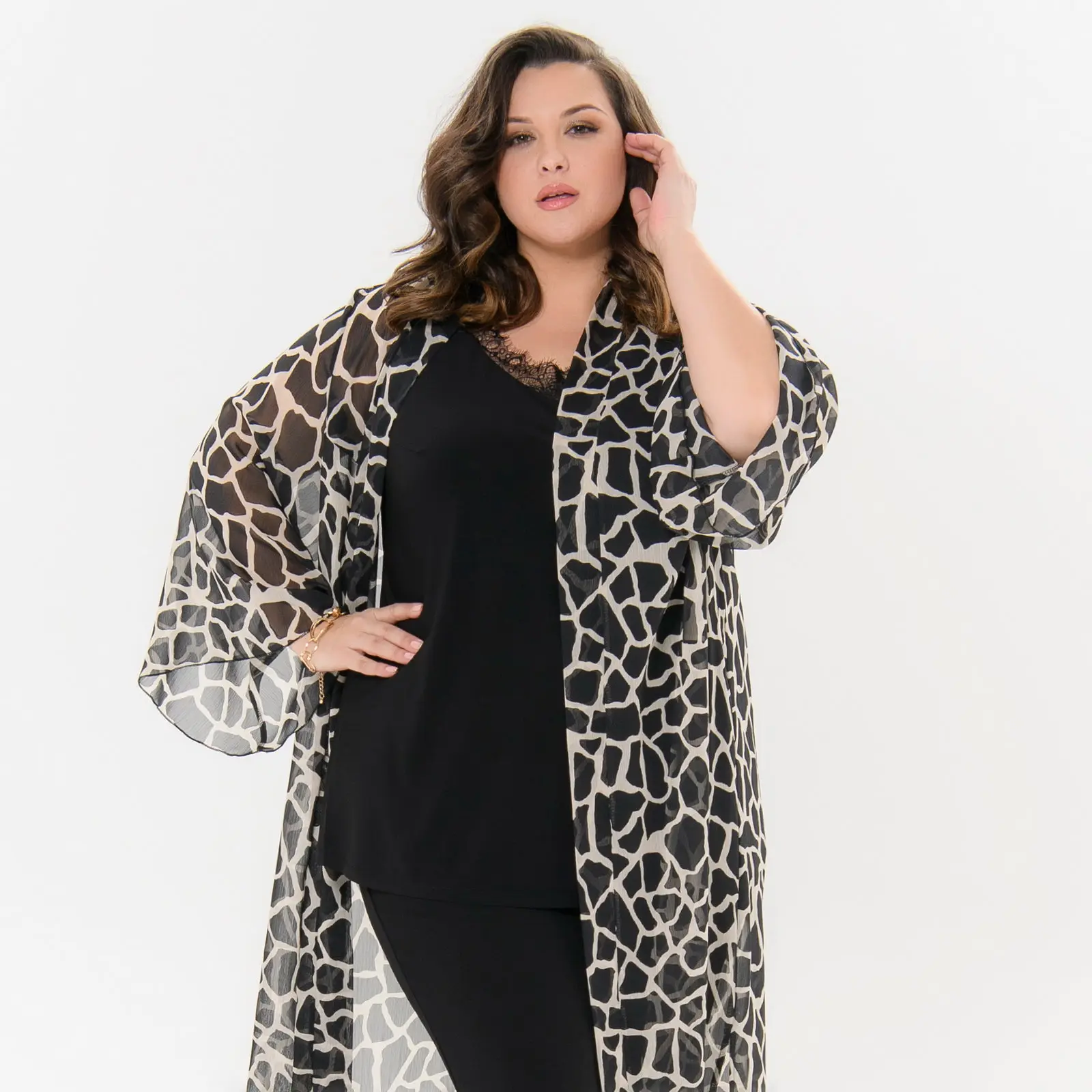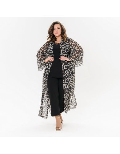 Кардиган длинный из шифона. По низу боковых швов разрезы. Рукав расклешенный. Эта модель уникальна, она способна дополнить легкостью и изяществом любой образ: будь то маленькое черное платье, струящиеся брюки с топом или комплект романтичного белья.