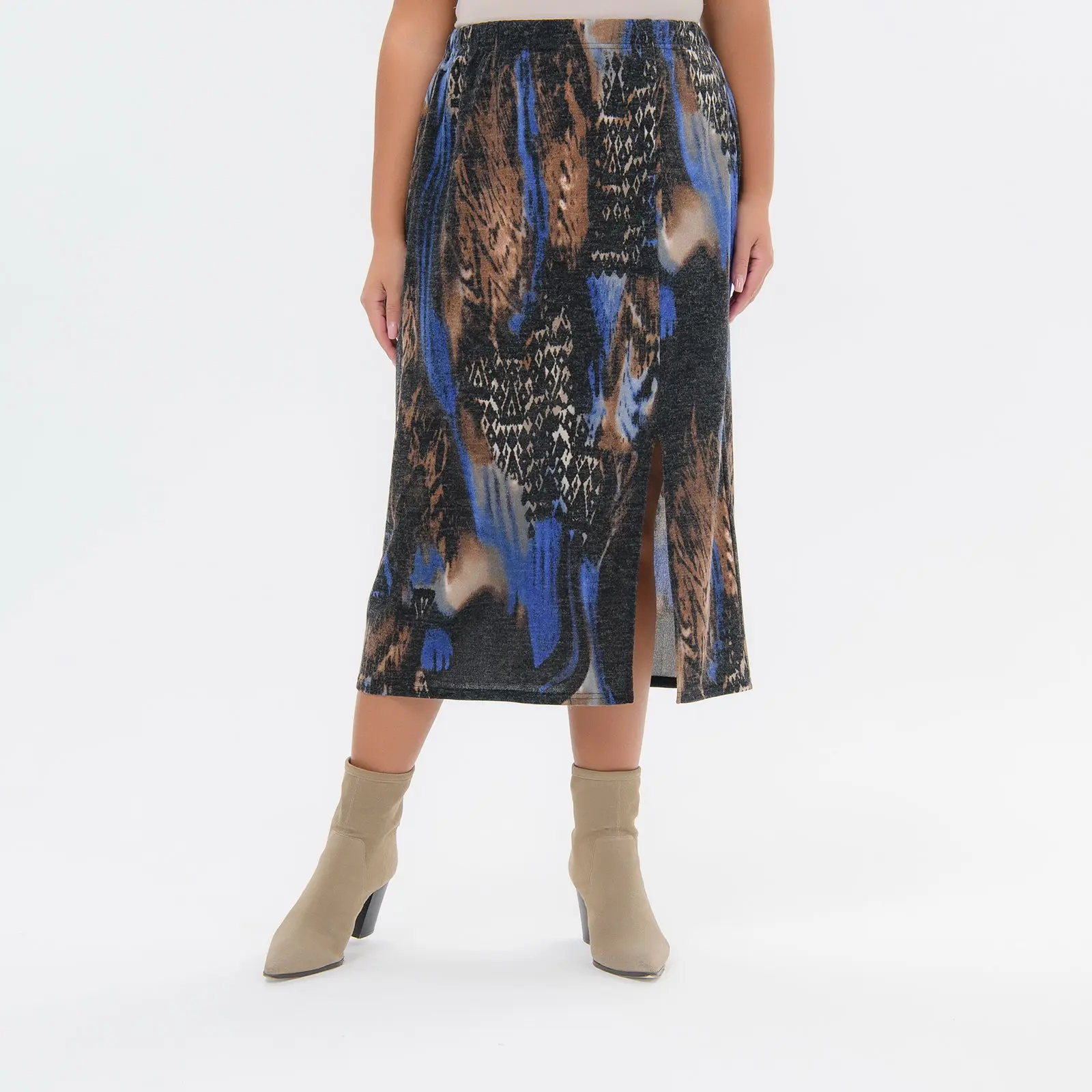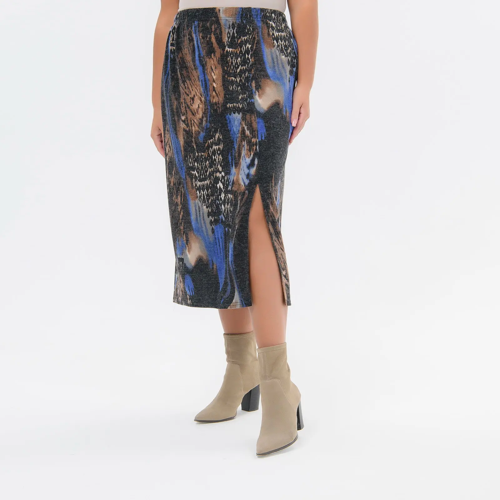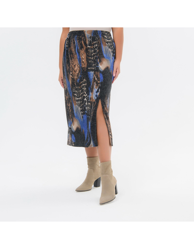 > Юбка с разрезом, джерси - ангора, принт "фантазия"