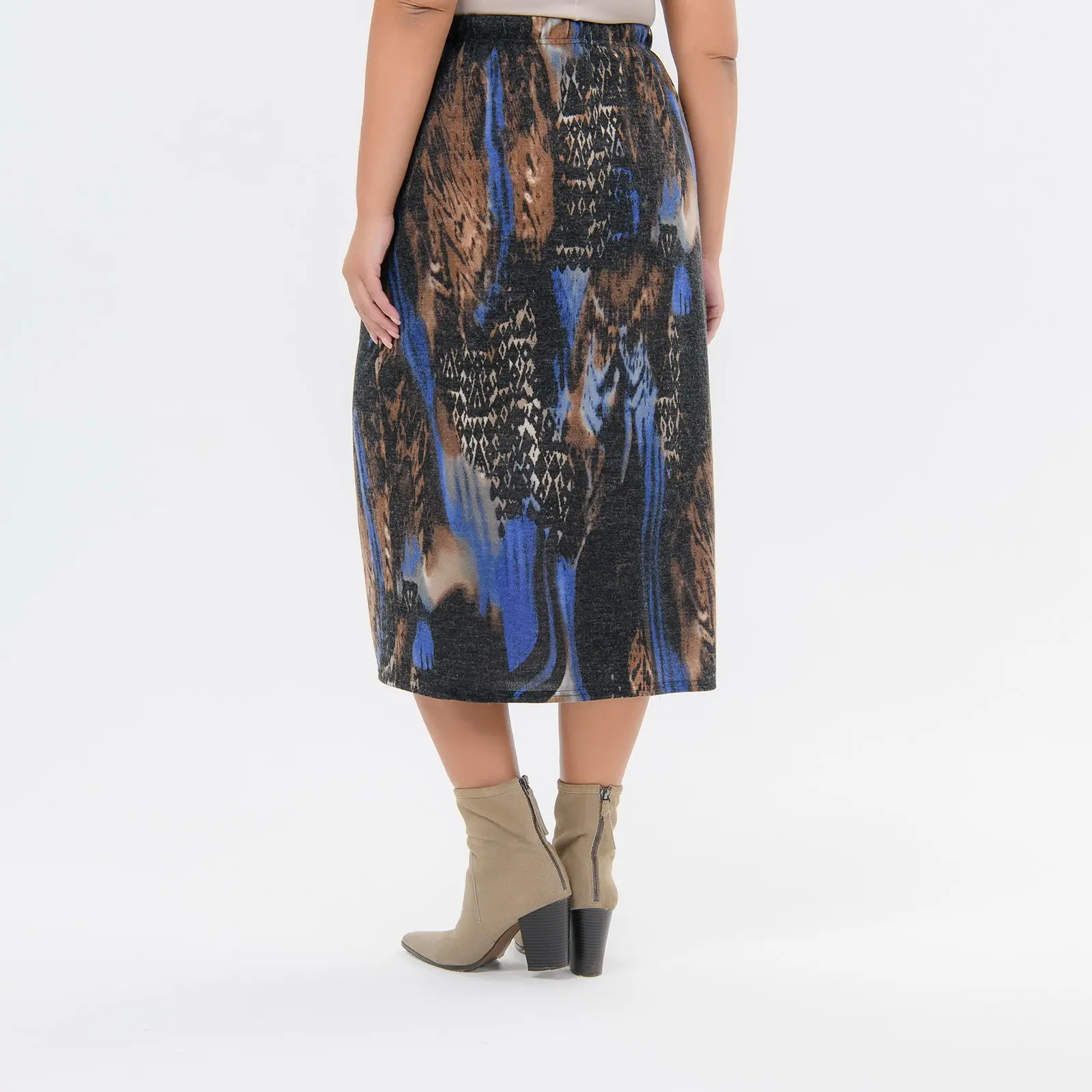 Юбка миди, слегка зауженная к низу из джерси, имитирующего ангору.