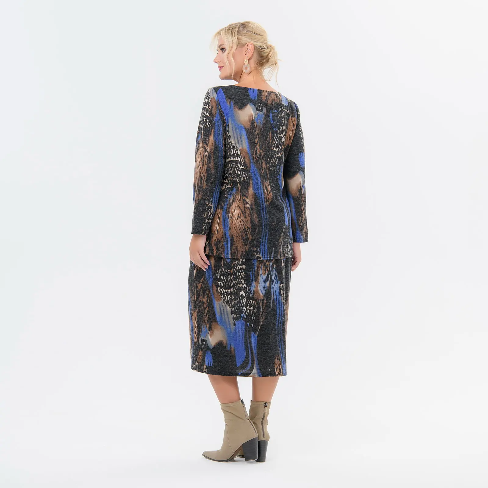 Юбка выполнена из нового артикула джерси, имитирующего ангору.