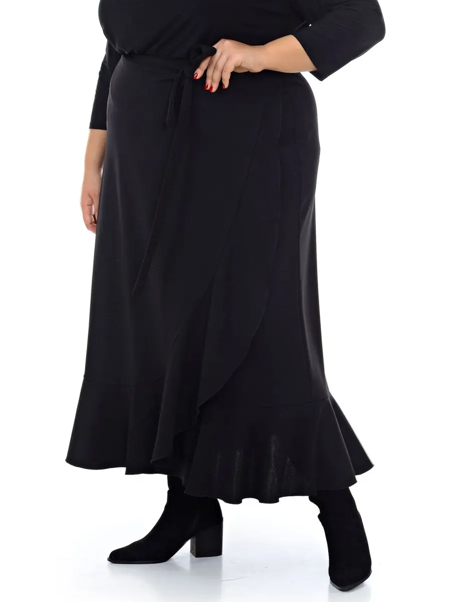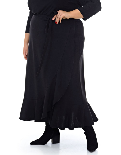 Роскошная юбка с запАхом из крепа с эластаном По закругленному срезу переда и нижнему срезу юбки проходит волан.