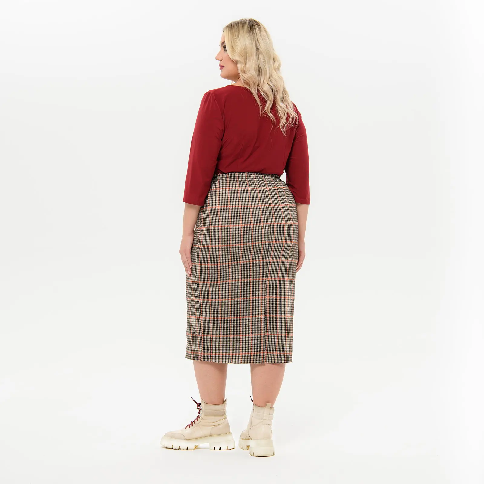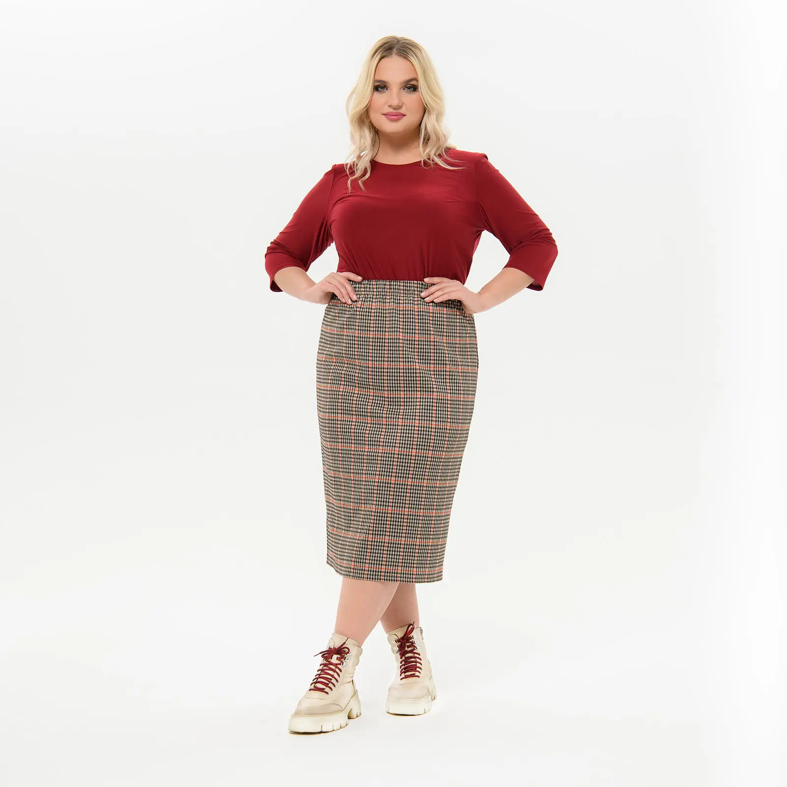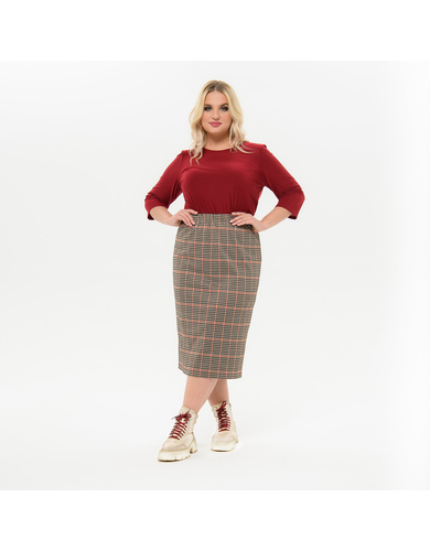 > Юбка карандаш из джерси клетка бежево - коричневая, на подкладке