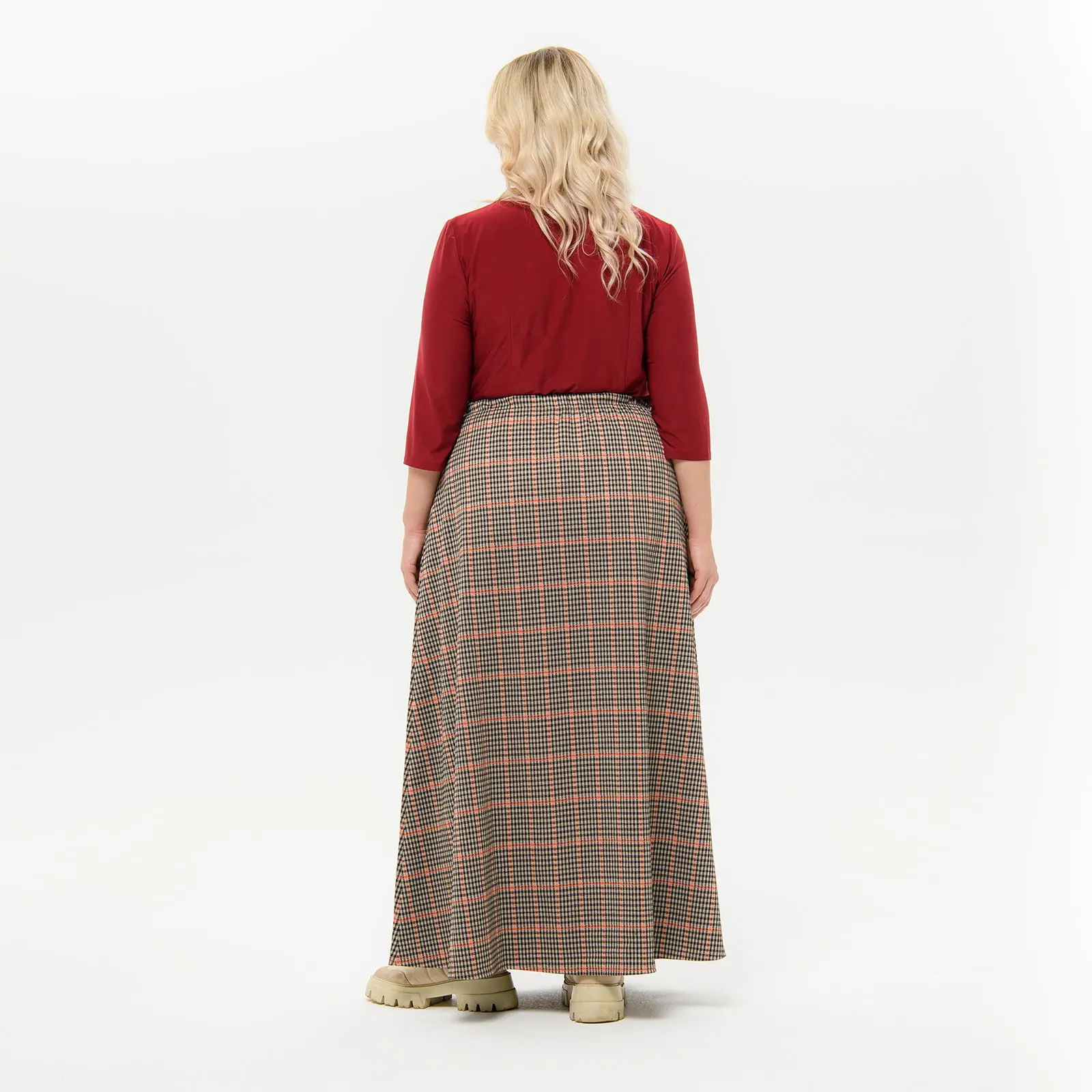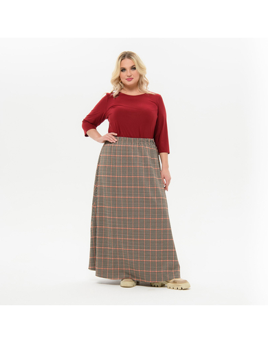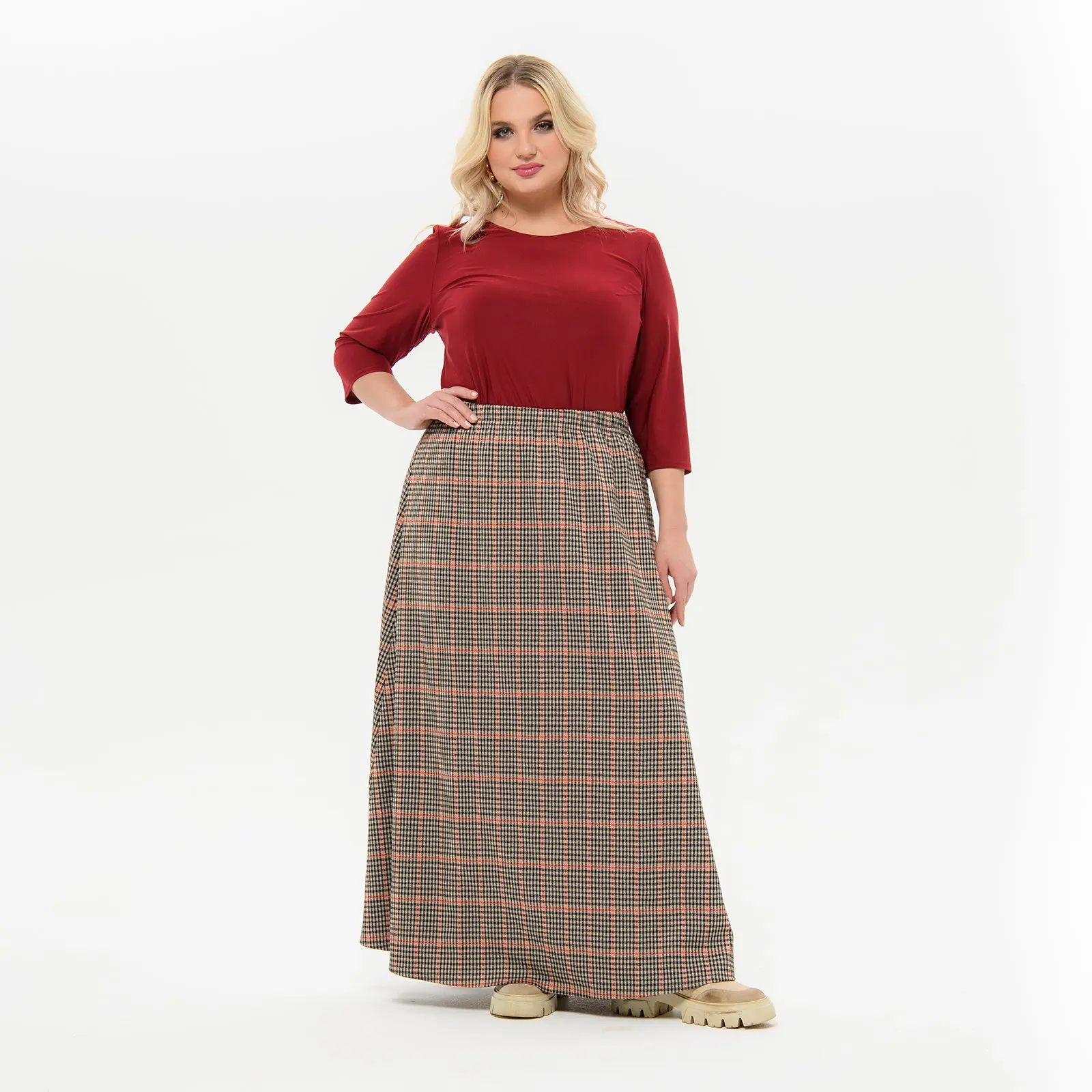 Юбка длинная из плотного трикотажного джерси, на подкладке, клетка бежево-коричневая
