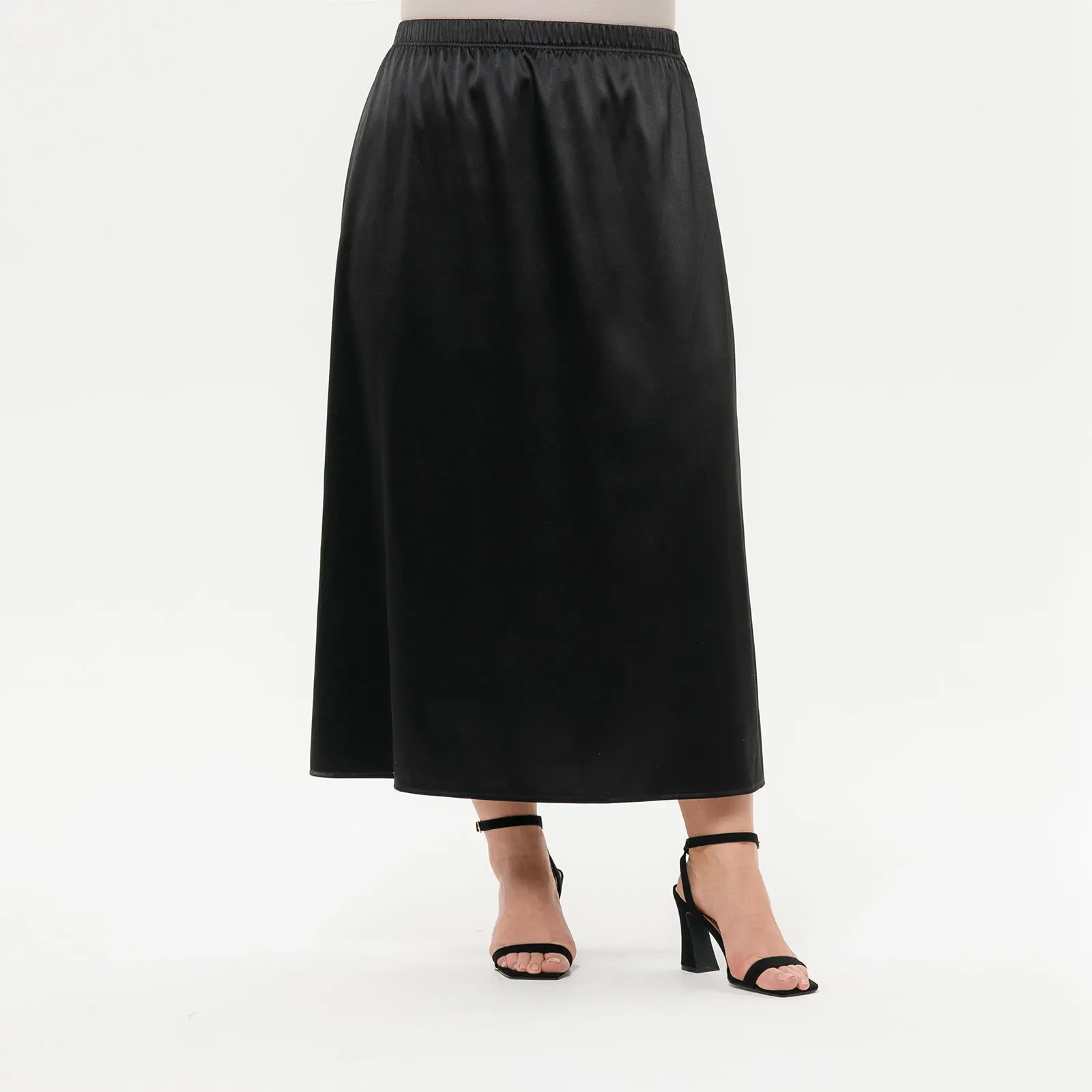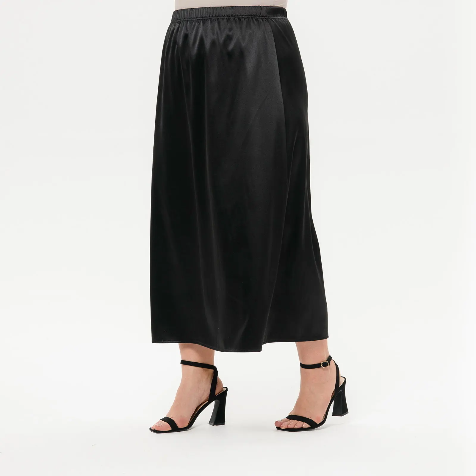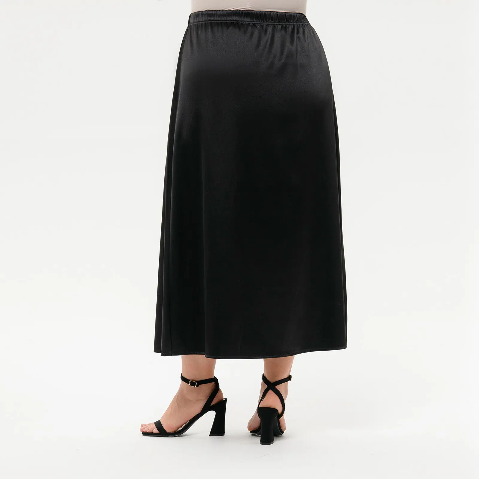Юбка миди А-силуэта из плотного атласа с эластаном. Верх на широкой резинке.