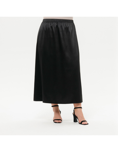 > Юбка А - силуэта из атласной ткани черного цвета на подкладке