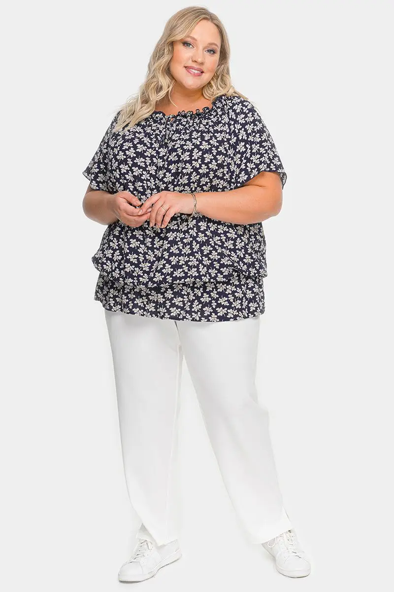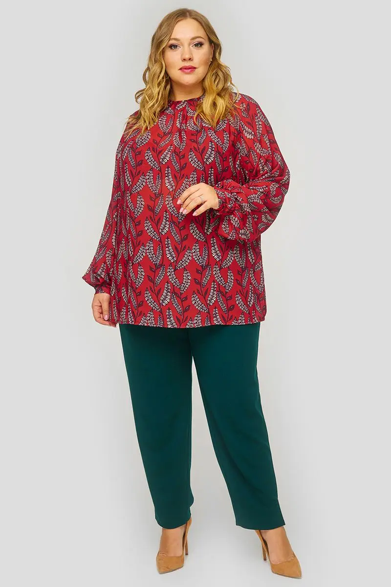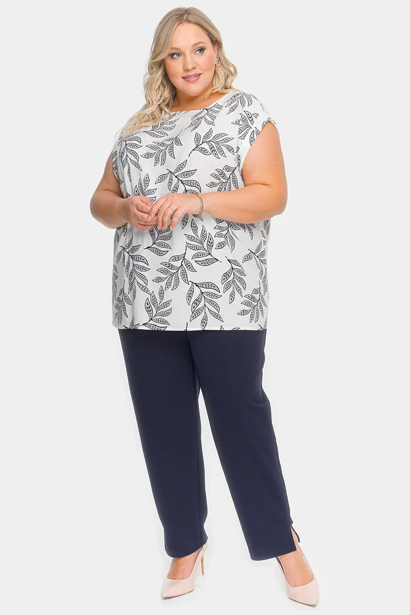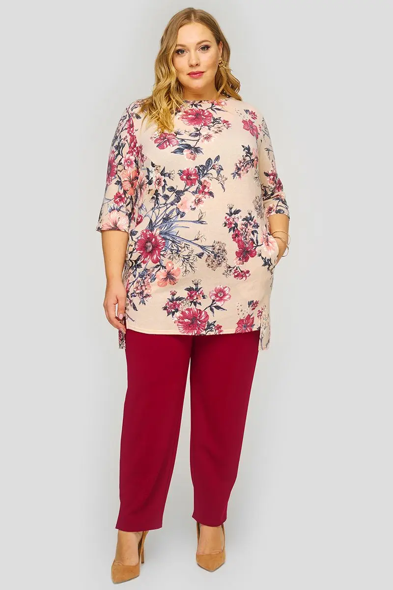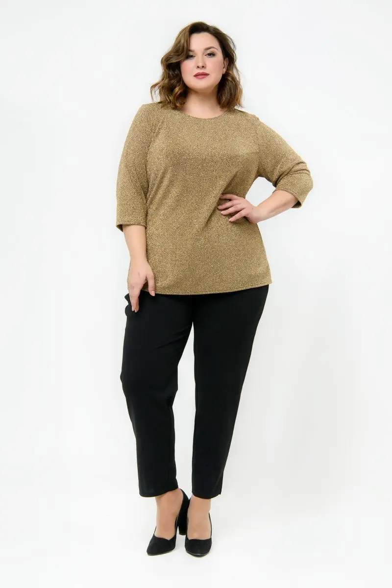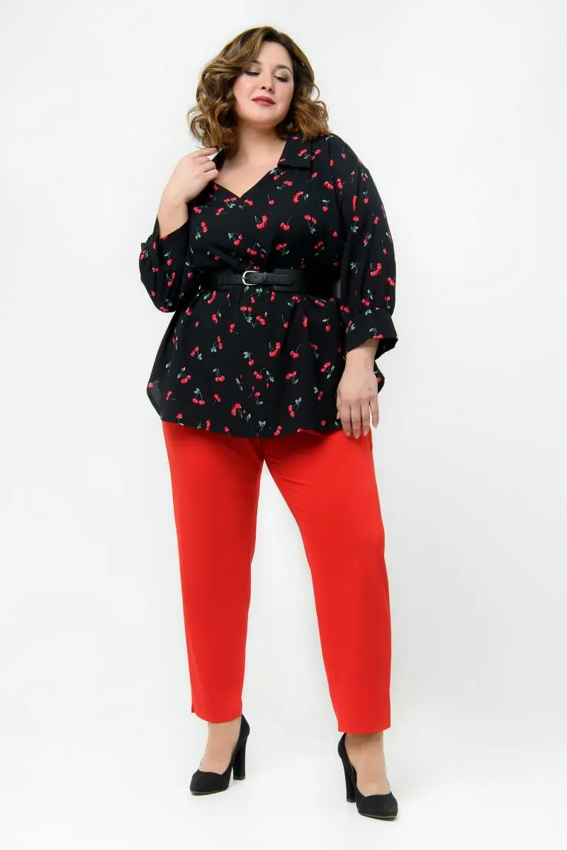 Брюки зауженные из крепа с эластаном, длиной 7/8. Верх на резинке, по низу боковых швов - разрезы. Ткань - креп с эластаном; состав: вискоза - 65%, полиэстер - 25%, эластан - 10%. Длина изделия от 105 см по боковому шву.