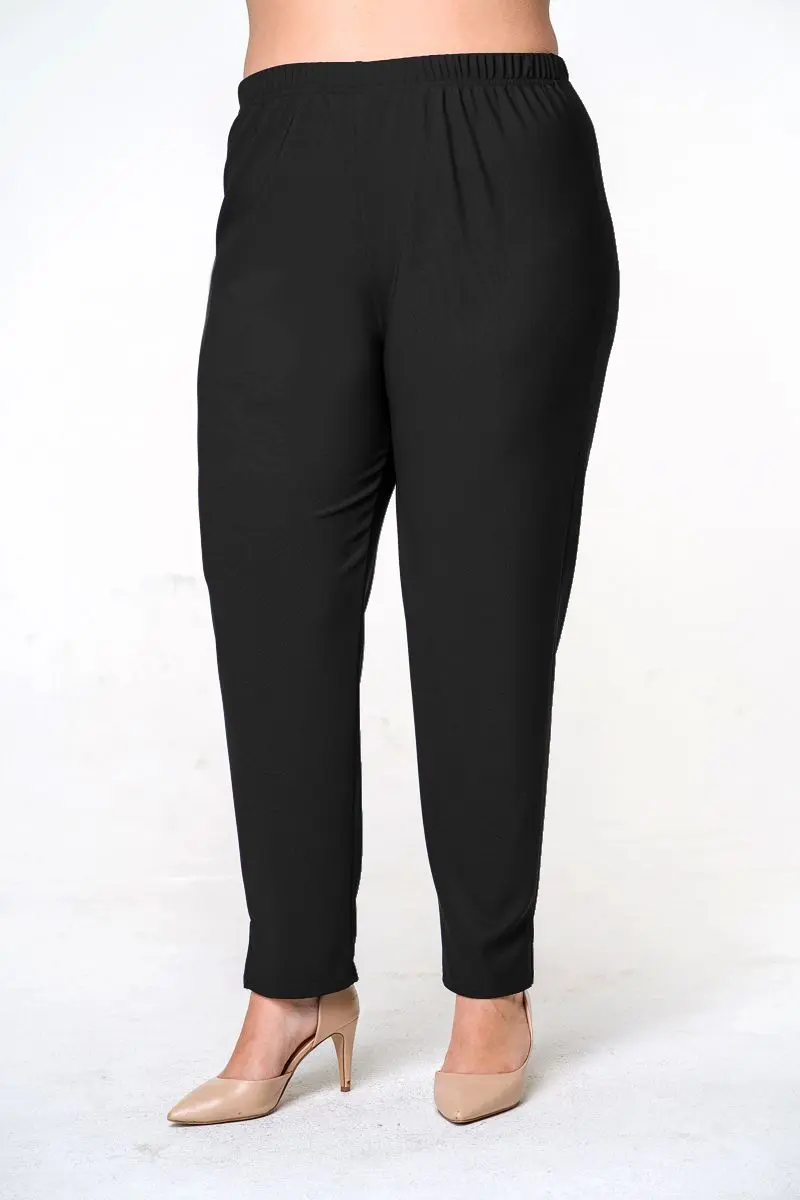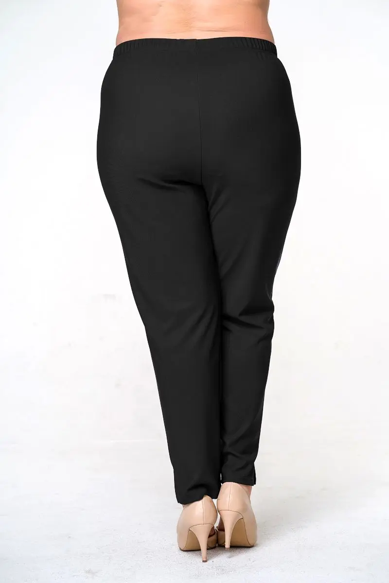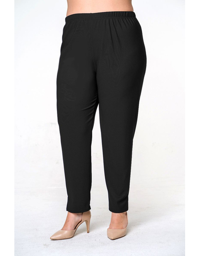 Брюки зауженные из джерси, длиной 7/8. Верх на резинке, по низу боковых швов - разрезы.