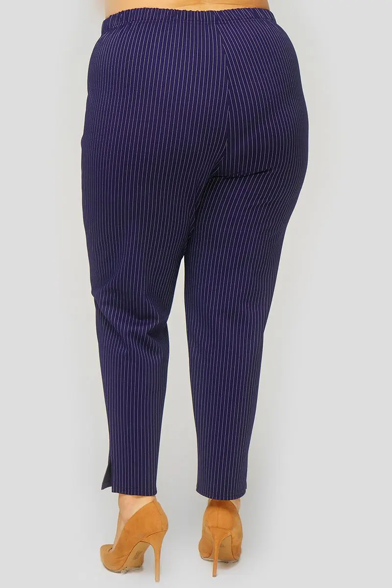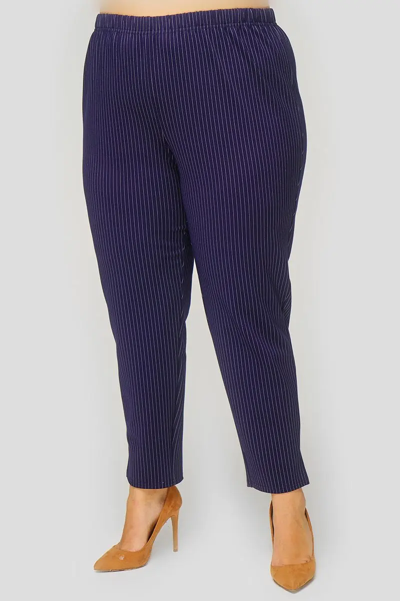 > Брюки зауженные 7/8 из темно-синего джерси в полоску