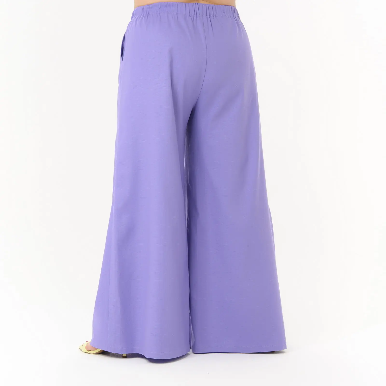 Стильные широкие брюки из льна. В боковых швах карманы. Верх на резинке шириной 3,5 см Ткань - лен, состав: 55%-лен, 45%- вискоза. Цвет - лавандовый. Длина изделия от 111 см по боковому шву. Рост модели 175 см.