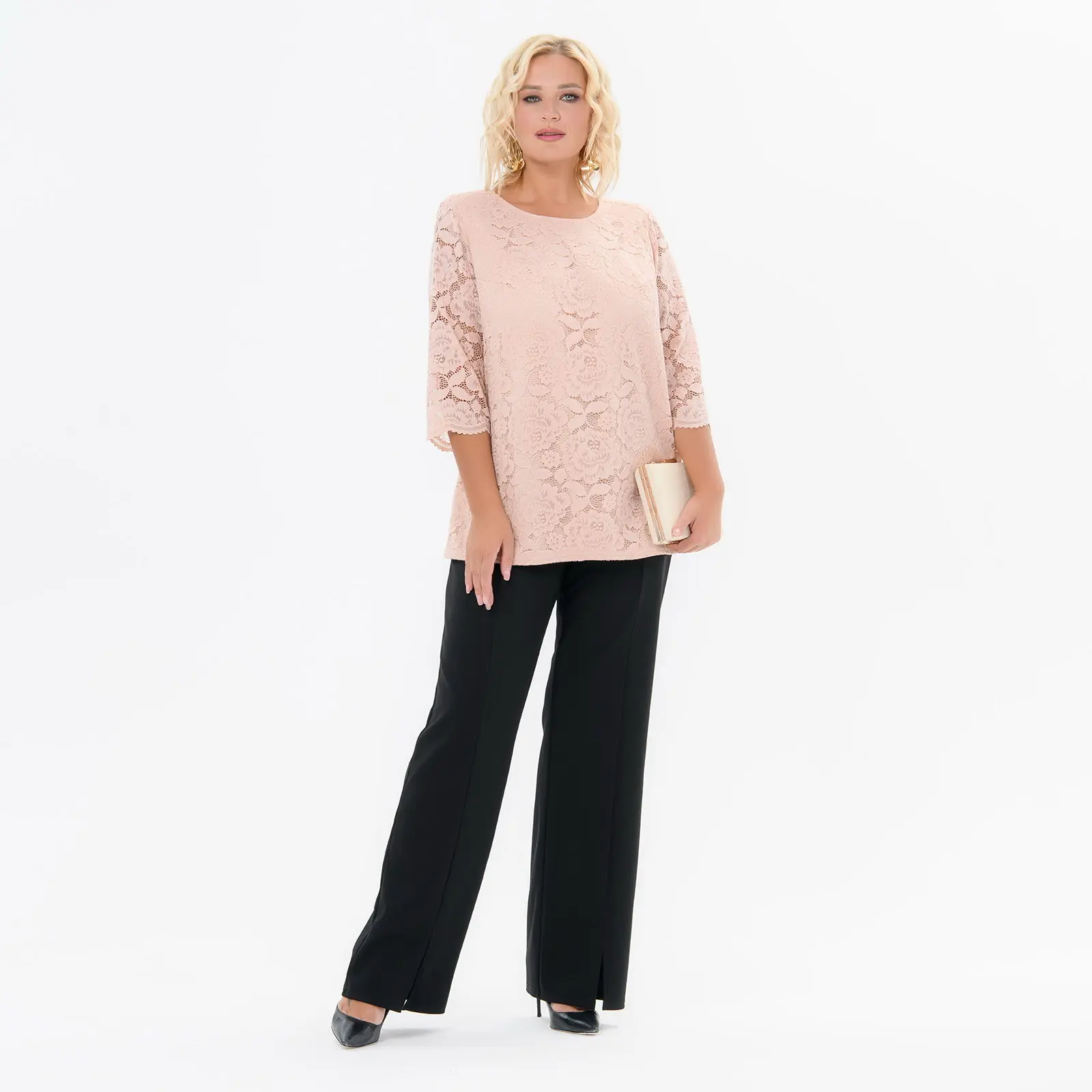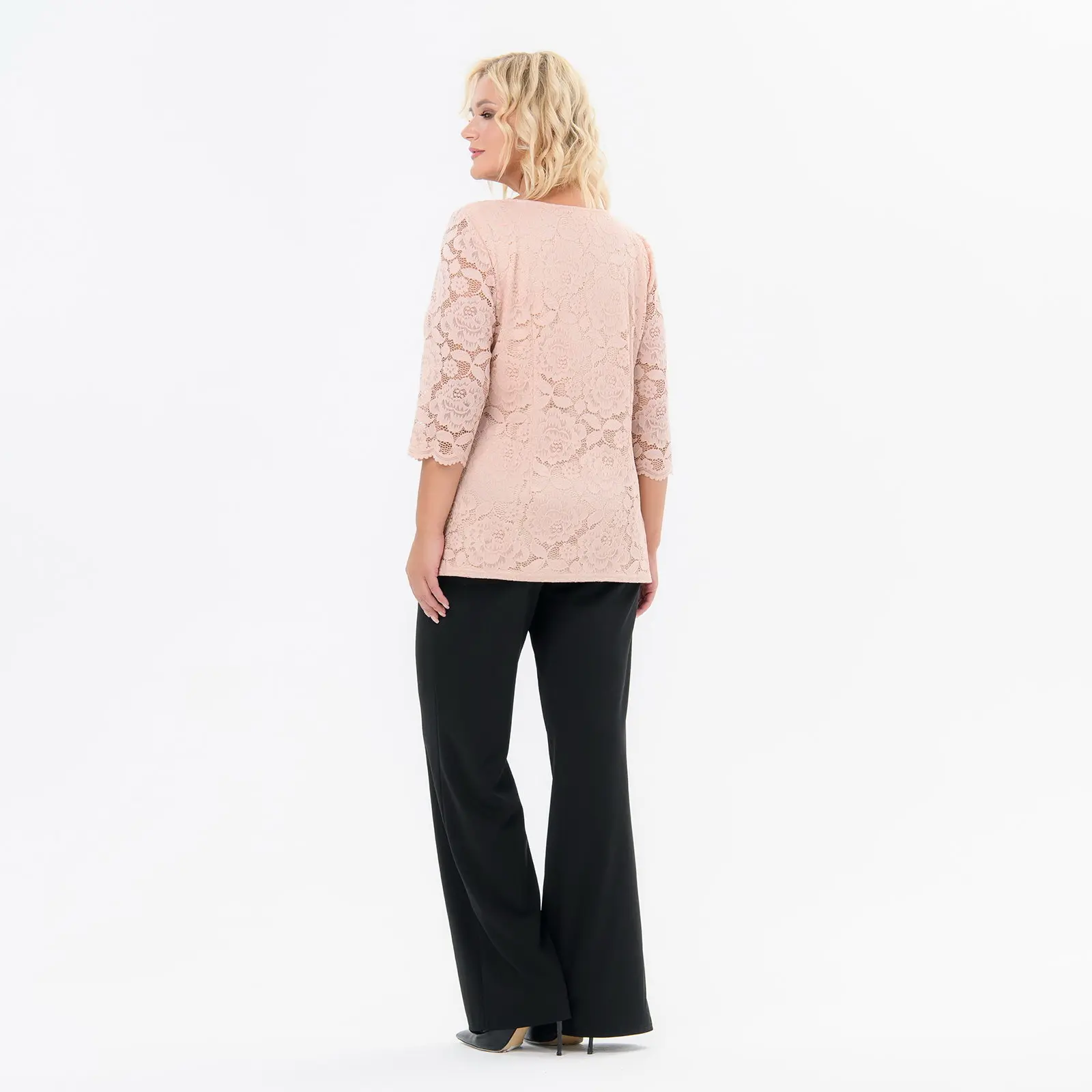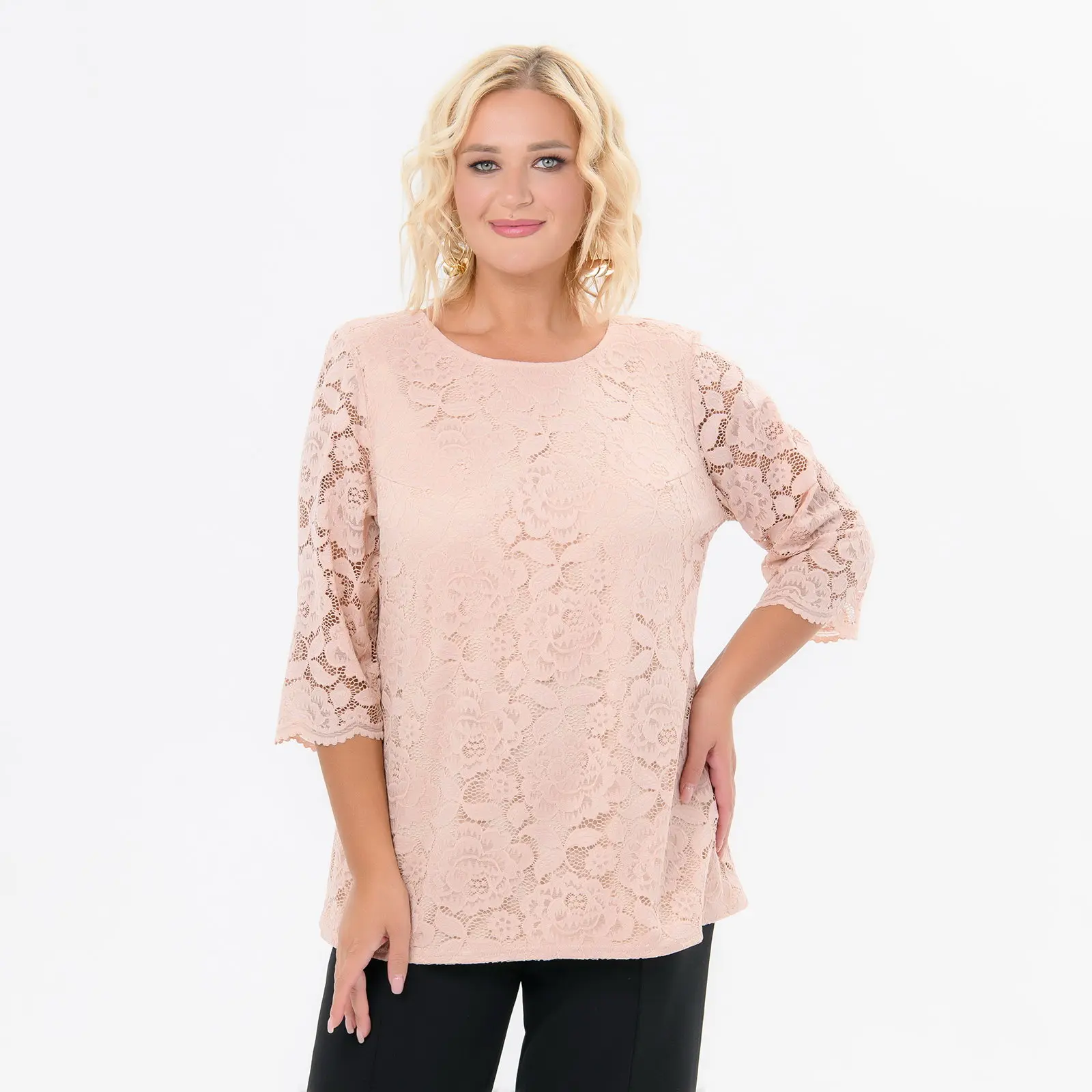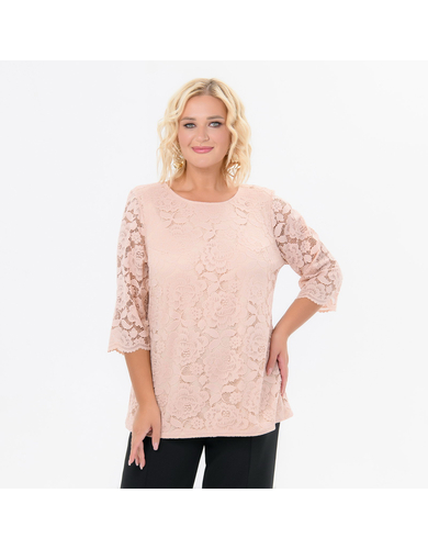 Кружевная блуза полуприлегающего силуэта. Вырез горловины округлый. Рукав 3/4.