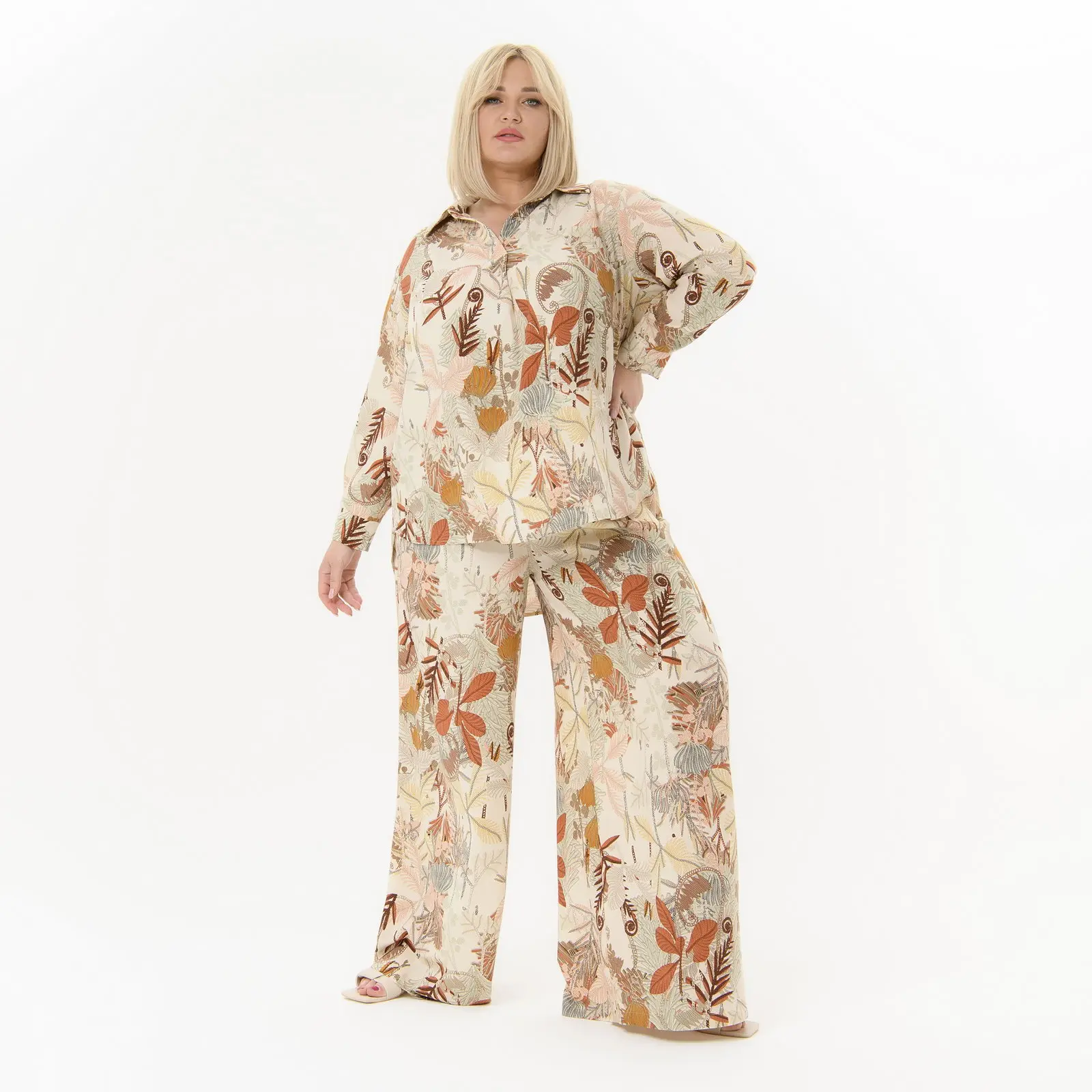 Стильные широкие брюки из штапеля. В боковых швах карманы. Верх на резинке шириной 3,5 см Ткань - 100%- вискоза. Цвет - мультиколор. Длина изделия - 110 см по боковому шву (вместе с резинкой). Рост модели 175 см. На модели представлен 58 размер.
