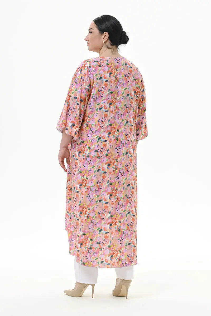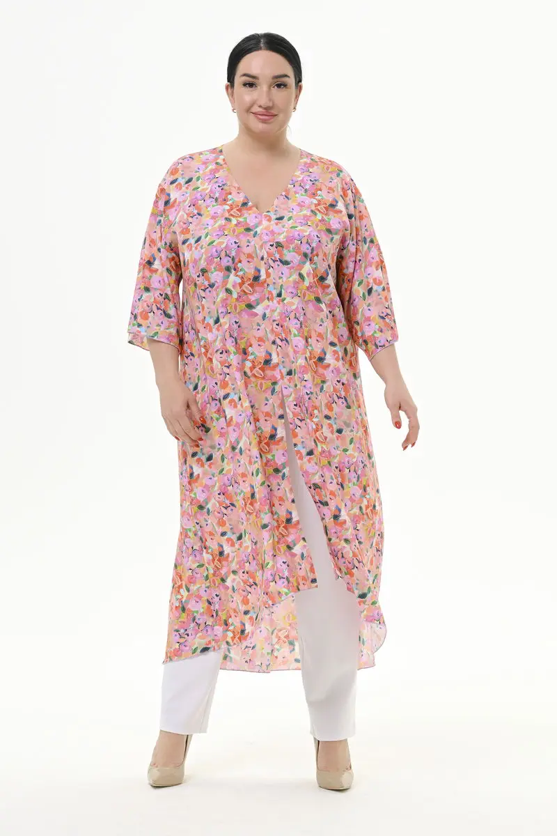 Легкая удлиненная туника с разрезом спереди и широкими рукавами из штапеля. Прекрасно подойдет к летнему образу, составив отличный комплект с джинсами или брюками. Также можно применять как пляжную тунику.
