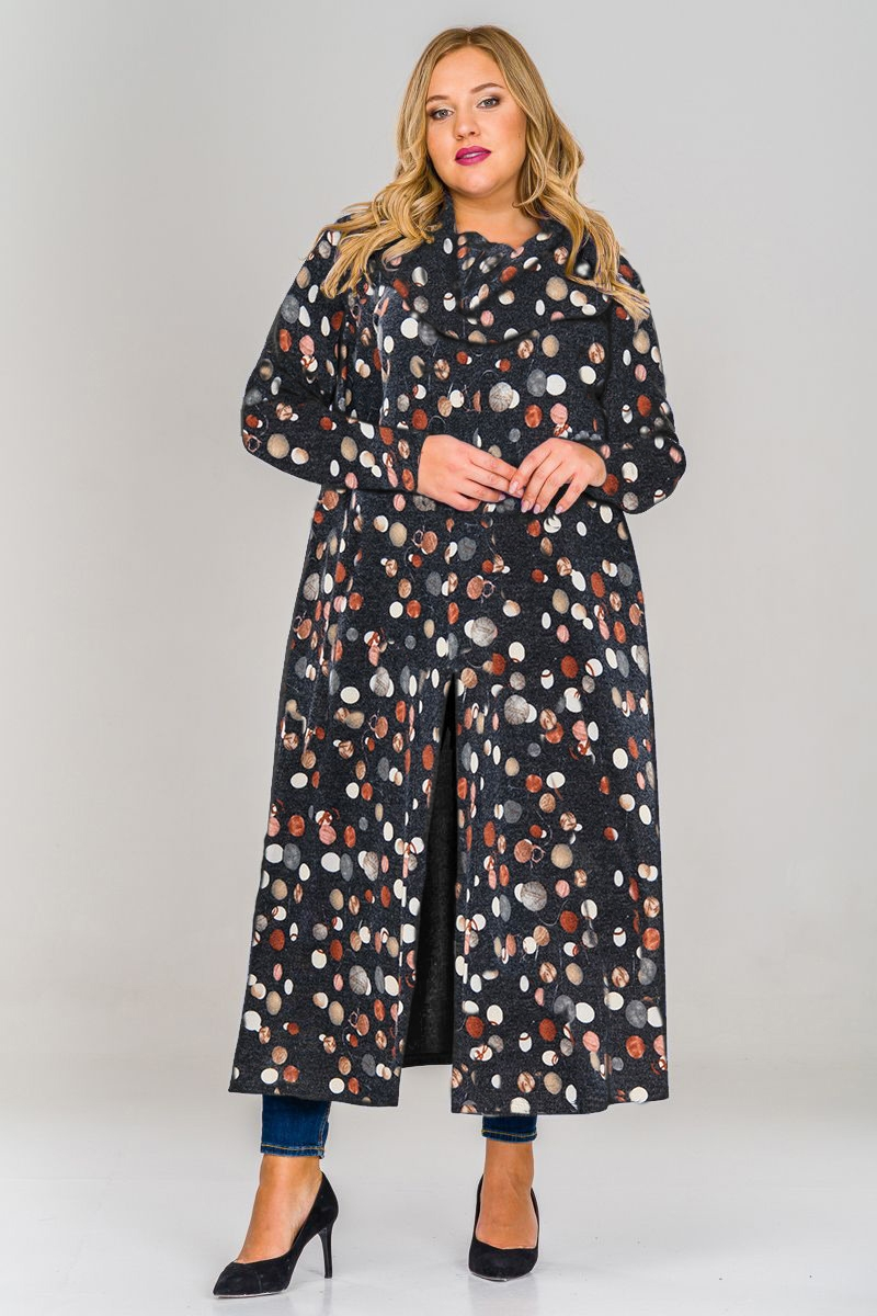 Удлиненная туника А-силуэта с длинным рукавом и воротником "хомут" выполнен из джерси, имитирующего ангору.