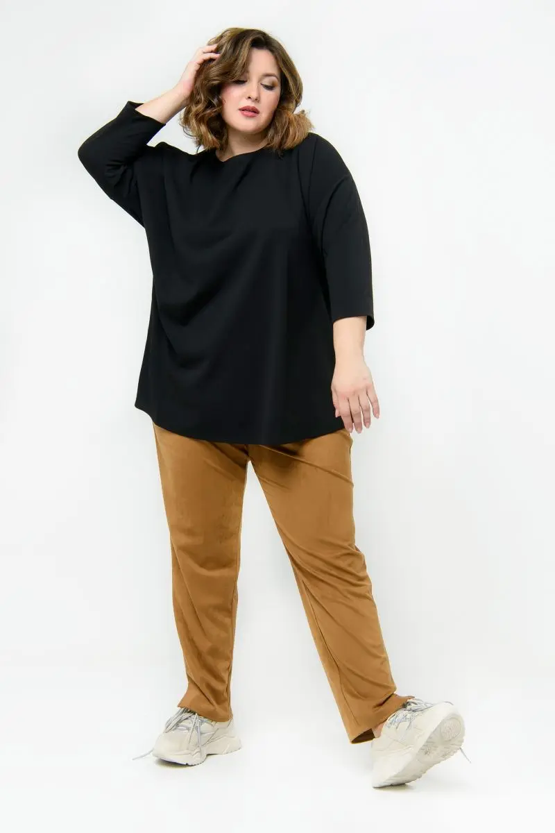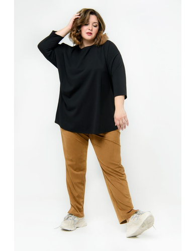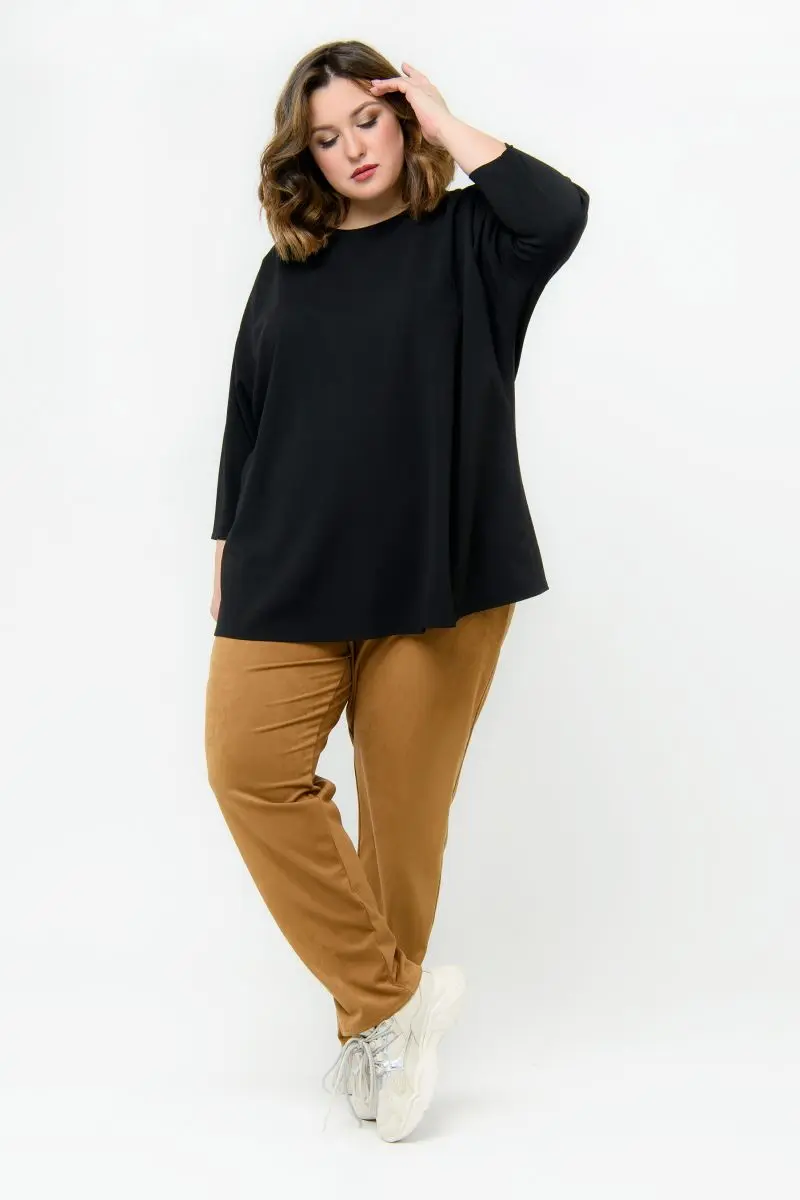 Блуза свободная из однотонного крепа с эластаном. Вырез горловины округлый. Рукав на основе цельнокроеного длиной 3/4.