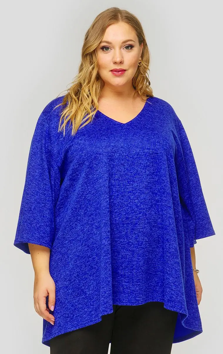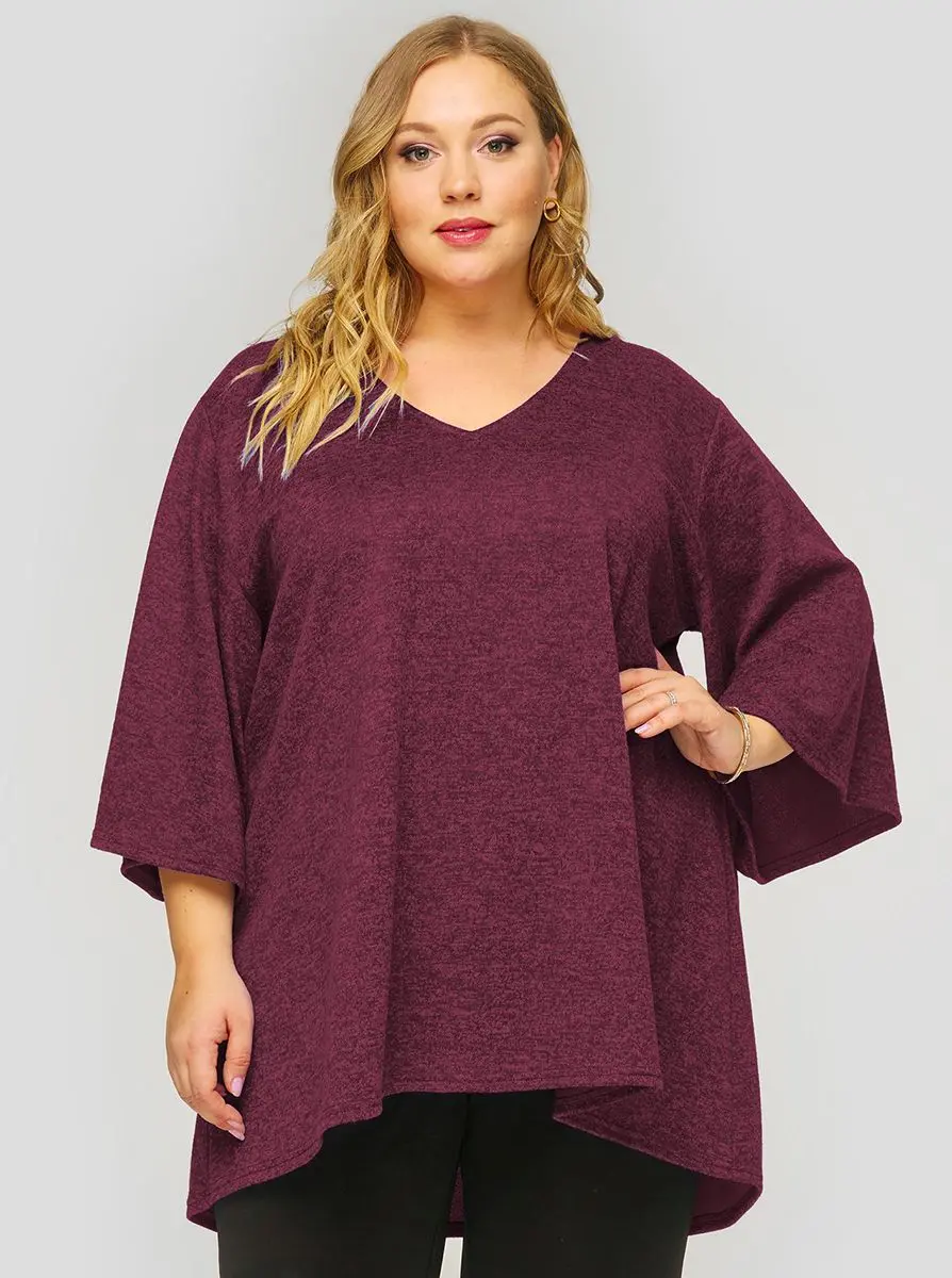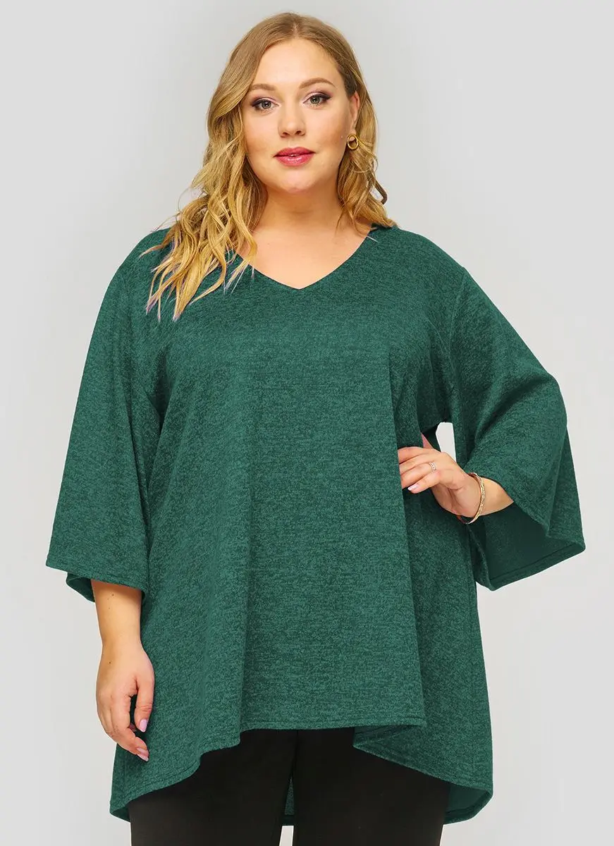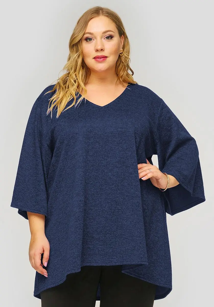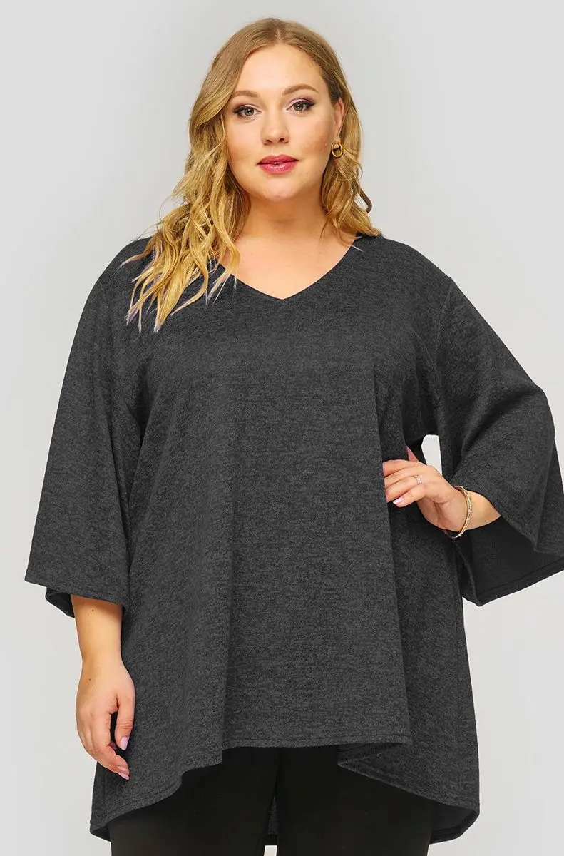 Свободная туника с асимметричной линией низа из мягкого джерси-меланж. V-вырез горловины. Рукав расклешенный. Идеально сочетается с джинсами, зауженными брючками 1412604.