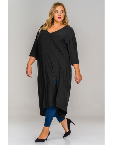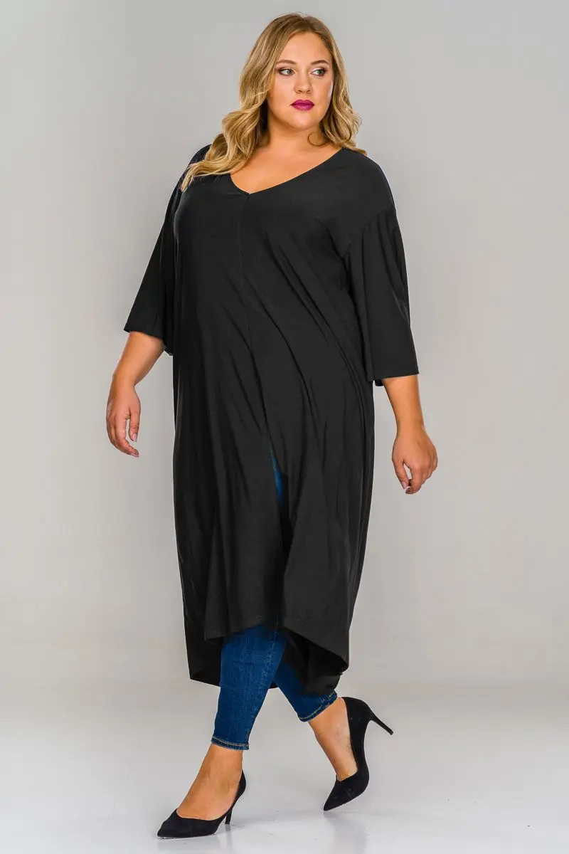 Легкая удлиненная туника с разрезом спереди и широкими рукавами. Составит отличный комплект с джинсами или брюками.