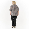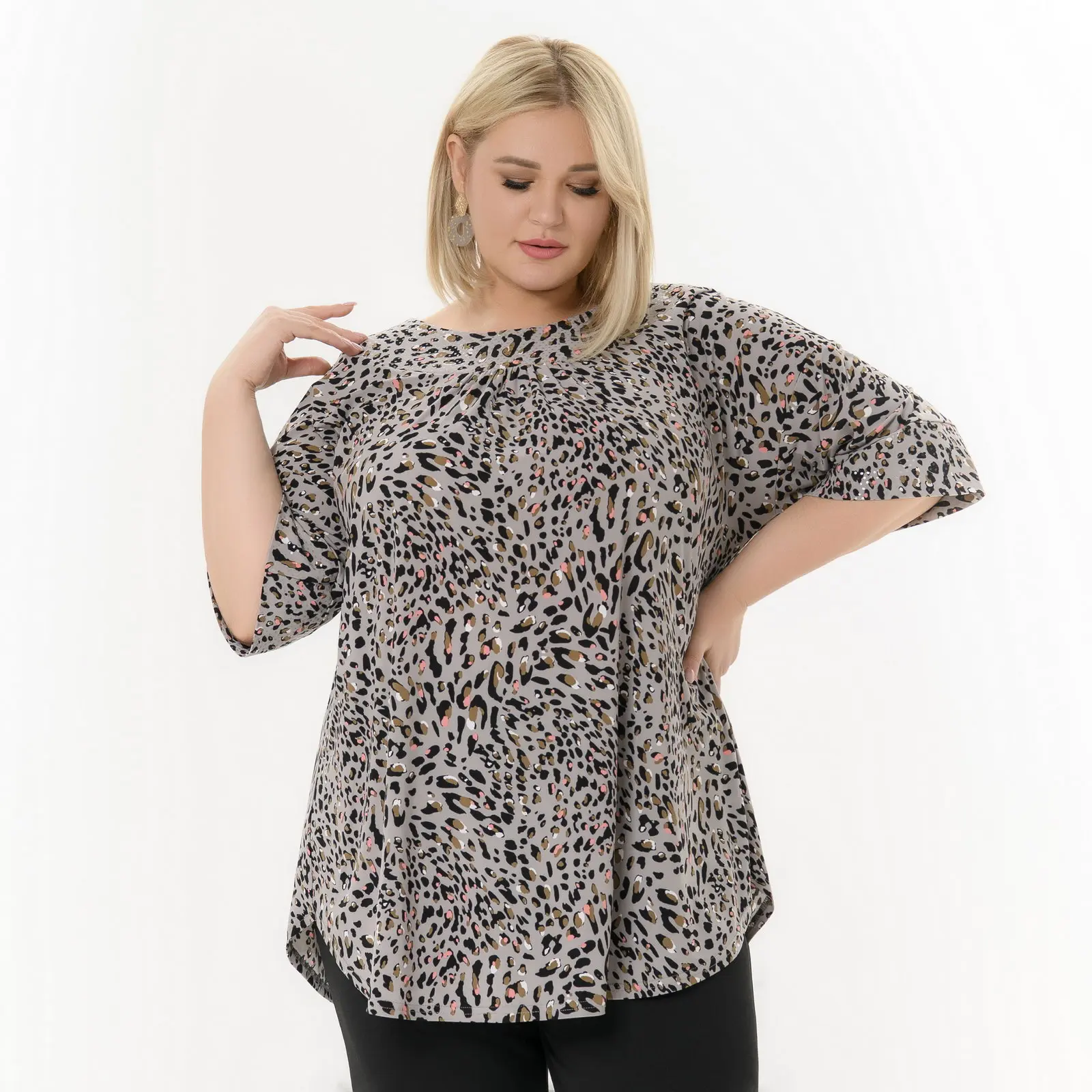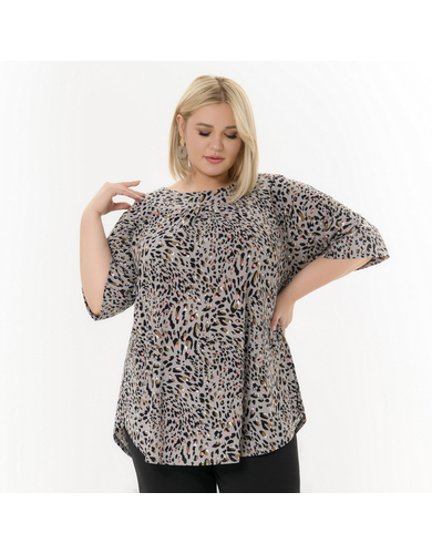 Свободная туника из трикотажа "масло". Горловина на широкой закругленной обтачке. По центру переда из под кокетки сборочка, по центру спинки встречная складка. Линия плеча спущена, рукав прямой, расширенный.