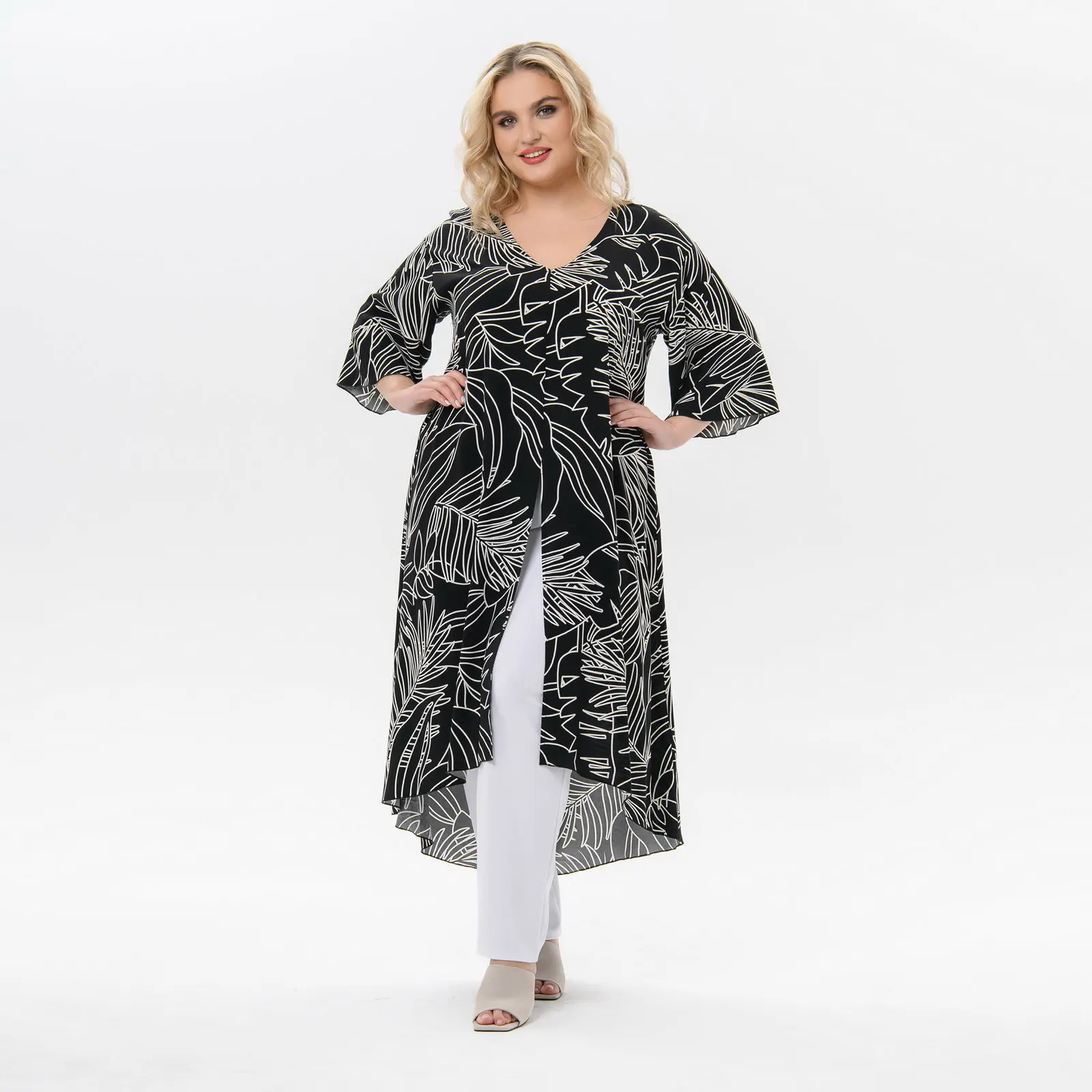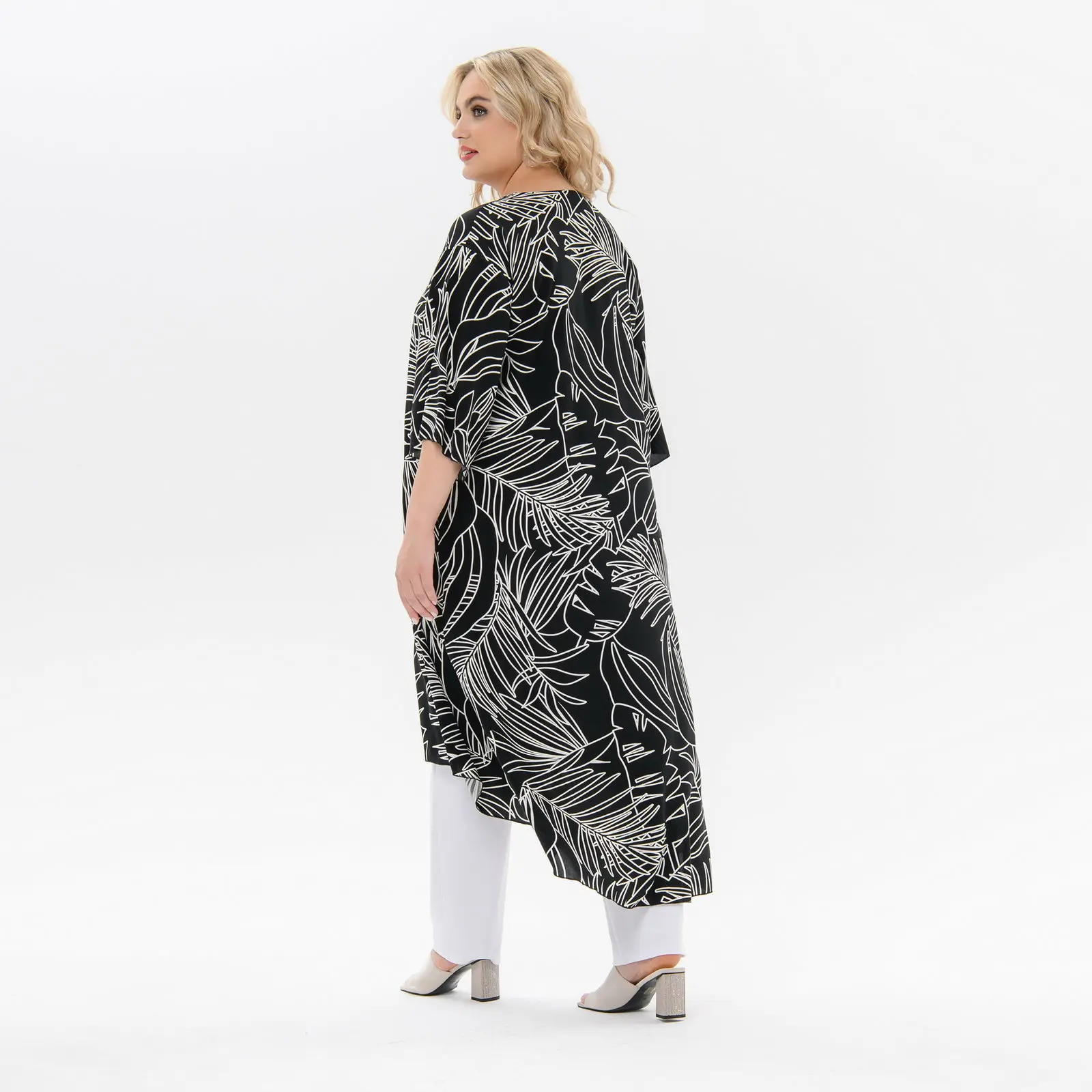 Туника удлиненная асимметричная, штапель, принт "черно-белый"