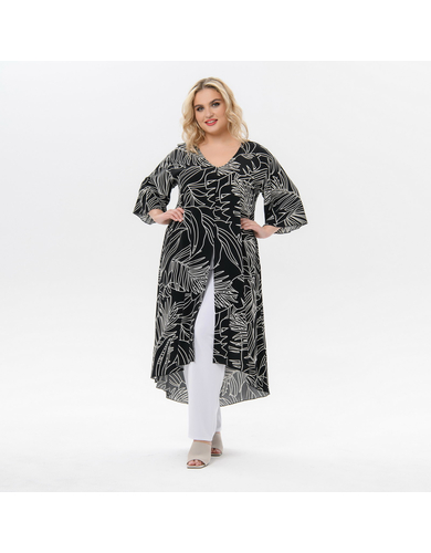 > Туника удлиненная асимметричная, штапель, принт "черно-белый"