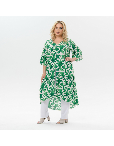 > Туника удлиненная асимметричная, штапель, принт "зеленая абстракция"