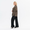 Планка выреза горловины и манжеты обработаны из ткани-компаньона контрастного цвета.