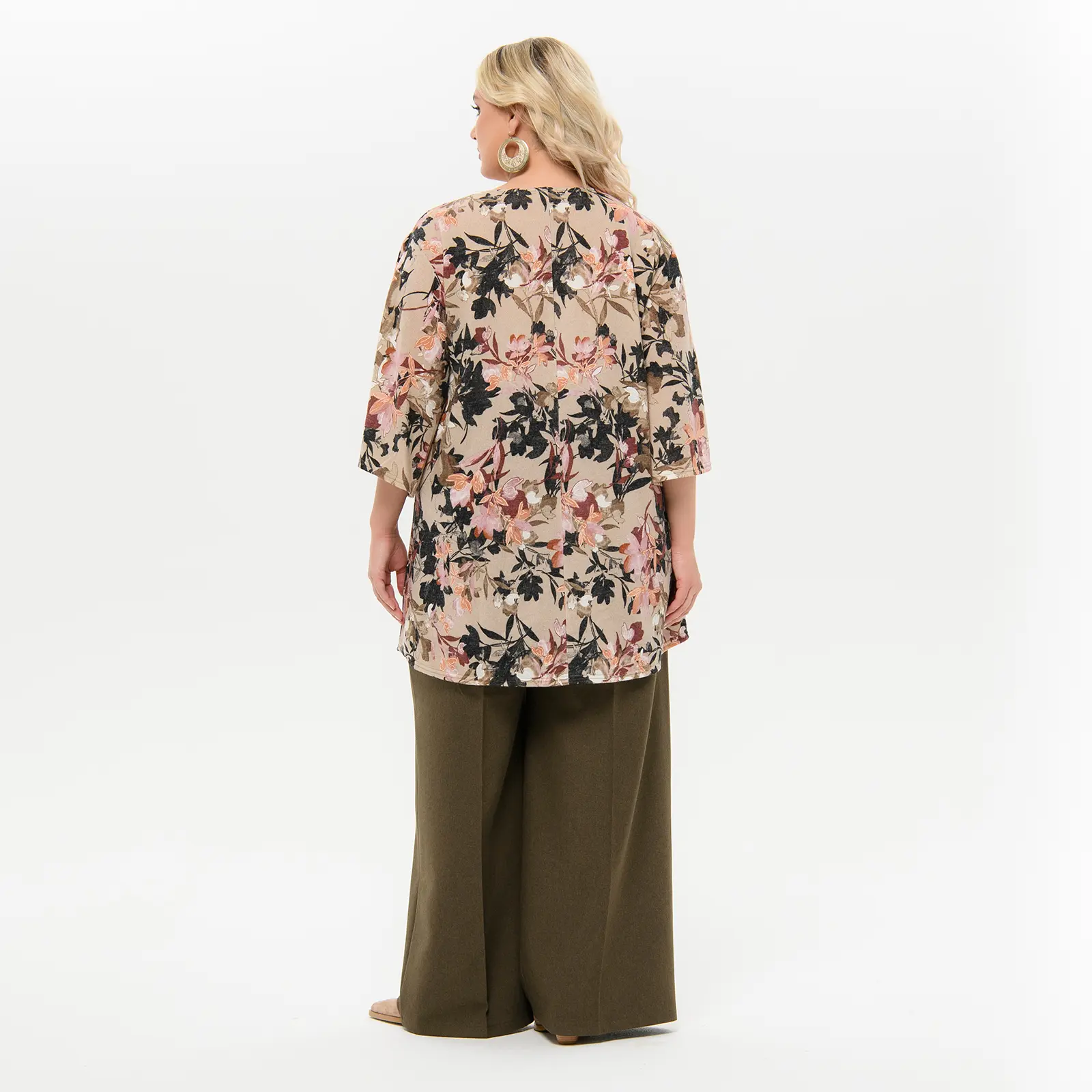 > Туника свободная из джерси - ангора бежевая, принт цветочный