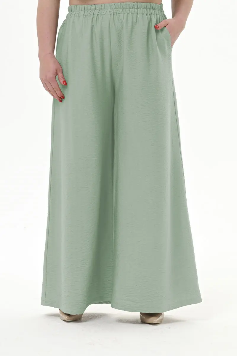 Стильные широкие брюки из плотной фактурной вискозы с легким эффектом "крэш". В боковых швах карманы. Верх на резинке шириной 3,5 см Ткань брюк легкая, но вместе с тем прочная, с рельефной поверхностью.Приятная и мягкая на ощупь, обладает матовым блеском и красиво смотрится в изделии. Вискоза, входящая в состав ткани, придает полотну мягкость и воздухопроницаемость, делает его приятным на ощупь, а полиэстер препятствует сминаемости. Материал хорошо подходит для создания повседневного гардероба благодаря своей способности сохранять безупречный внешний вид в течение дня. Если брюки помялись, им достаточно дать отвисеться на вешалке около часа и они снова приобретут идеальный внешний вид. . Ткань - 80%- вискоза; 20% - полиэстер. Длина изделия от 111 см по боковому шву вместе с поясом - резинкой. Рост модели 172 см. На модели представлен 58 размер.