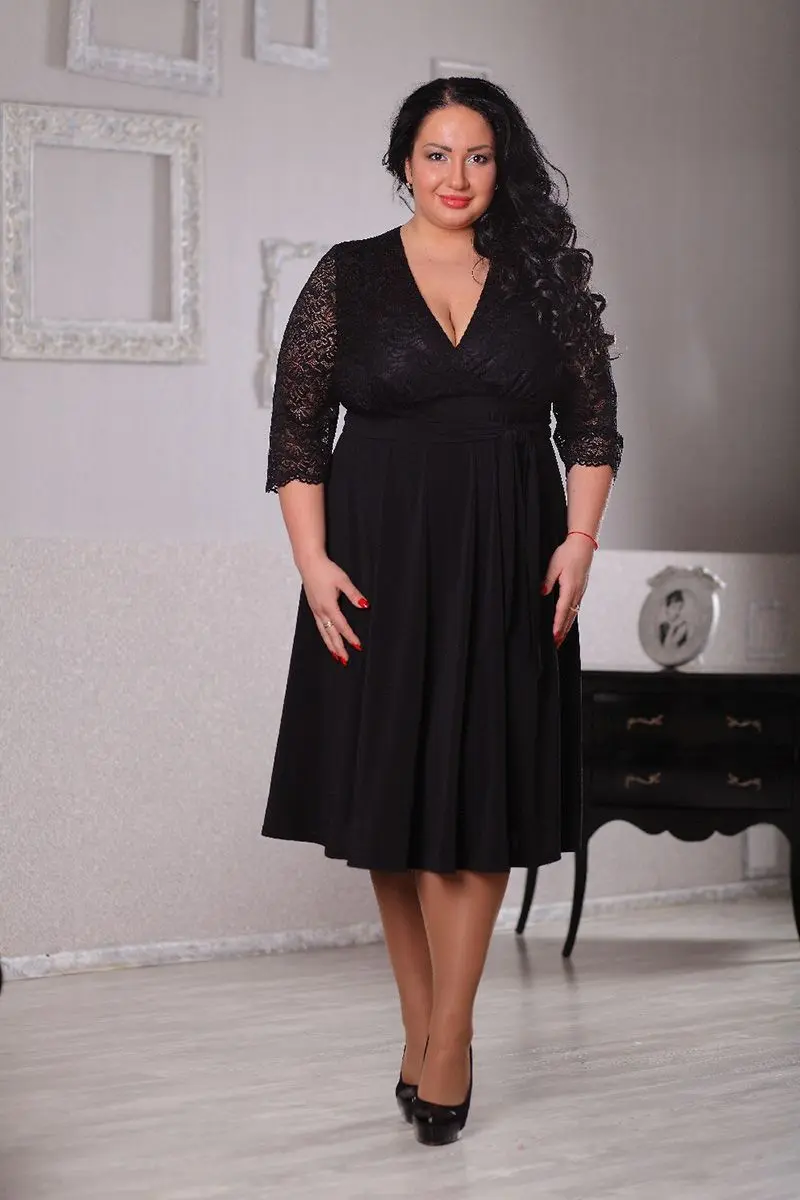 Черное коктейльное платье большого размера выгодно сможет выделить свою обладательницу из толпы приглашенных на вечеринку дам. Оно подчеркнет очарование ее округлой фигуры, пышность соблазнительных бедер и красоту высокой груди. Любая полная дама сможет почувствовать себя в таком платье для коктейлей самой стильной и неотразимой, сексуальной и привлекательной. Большое черное платье позволит пышнотелой красавице преподнести себя в самом выгодном свете, его удлиненное декольте привлечет пылкие взгляды всего мужского окружения, а легкая подчеркнутость талии вызовет у сильной половины неподдельный восторг.