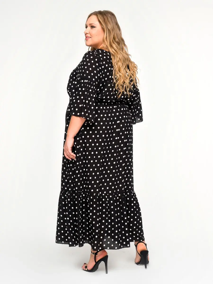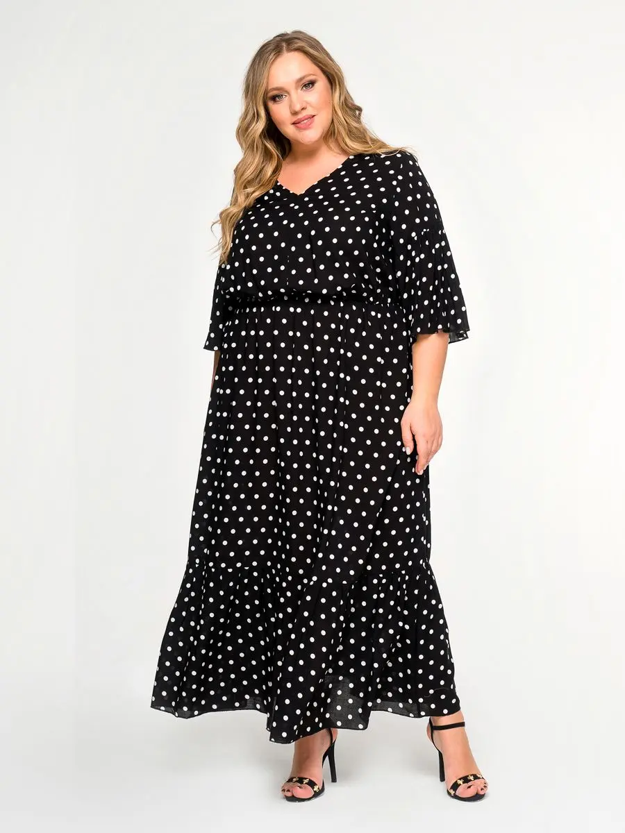 > Платье из штапеля с воланом по низу, принт "горошек"