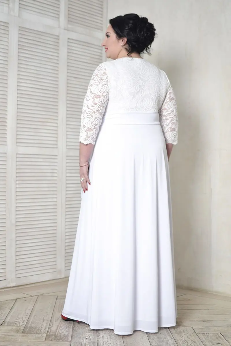 > Платье в пол вечернее-свадебное с широкими рукавами из кружева белое