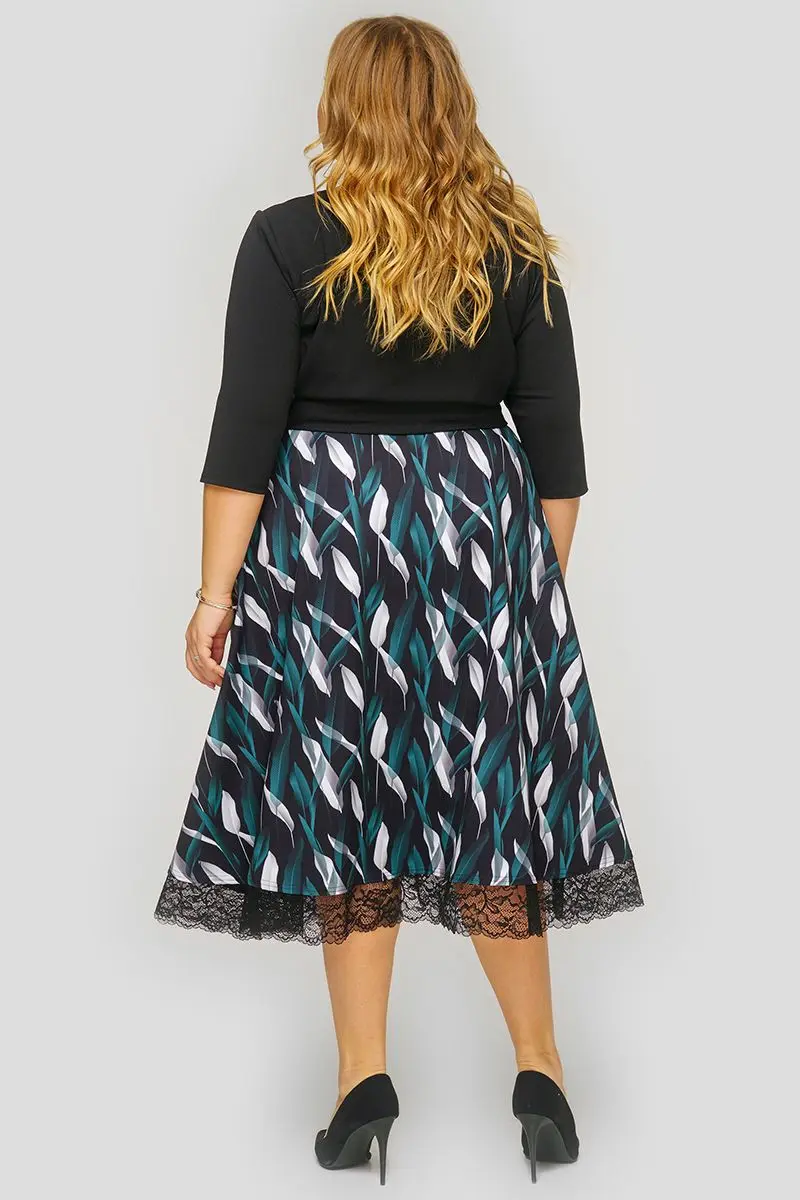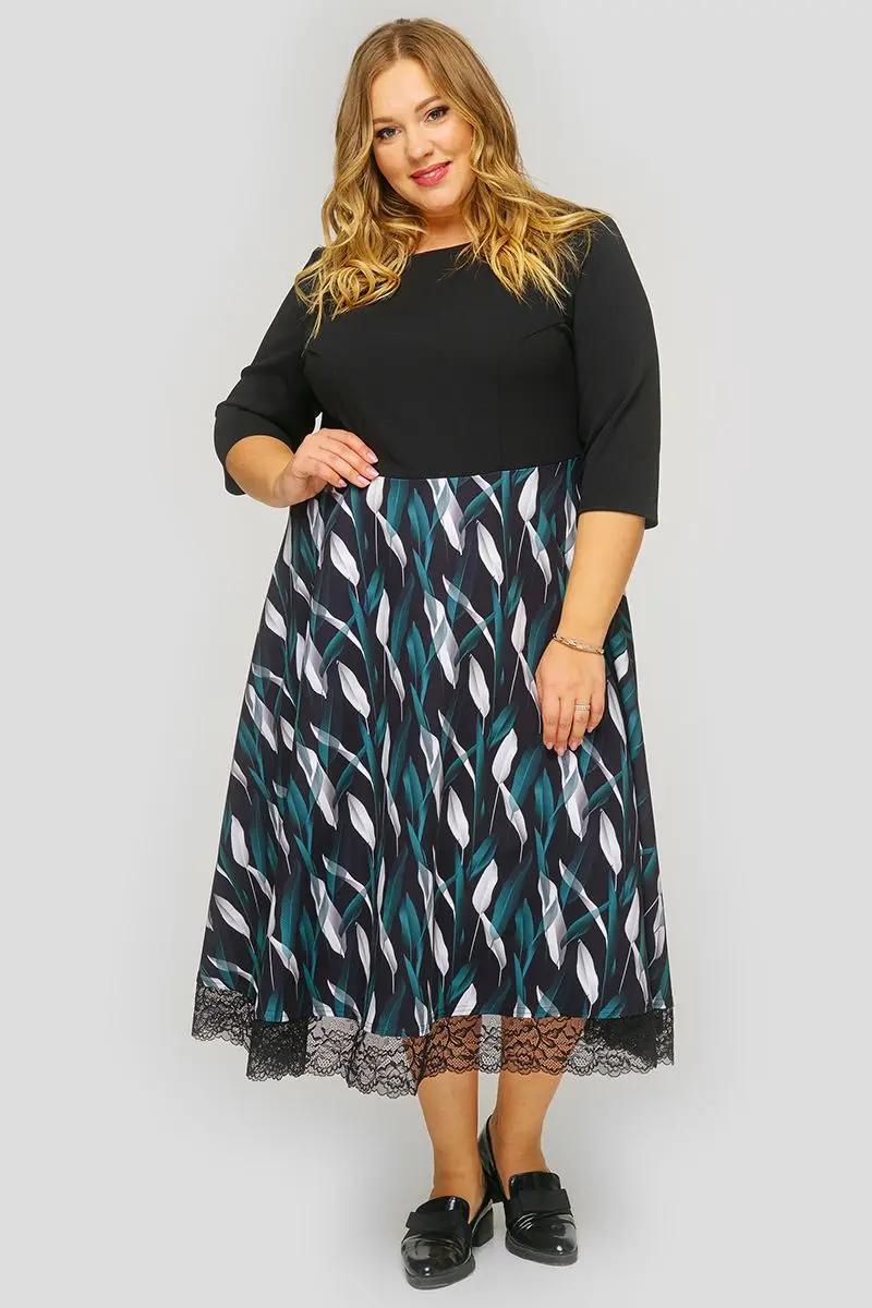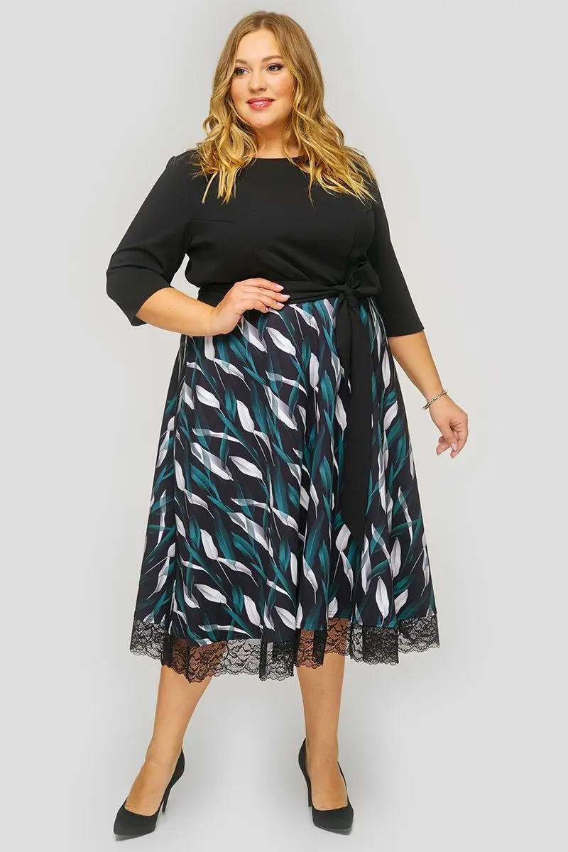 Романтичное платье с отрезной расклешенной юбкой, завязывающееся на пояс. Вырез горловины округлый, рукав 3/4.
