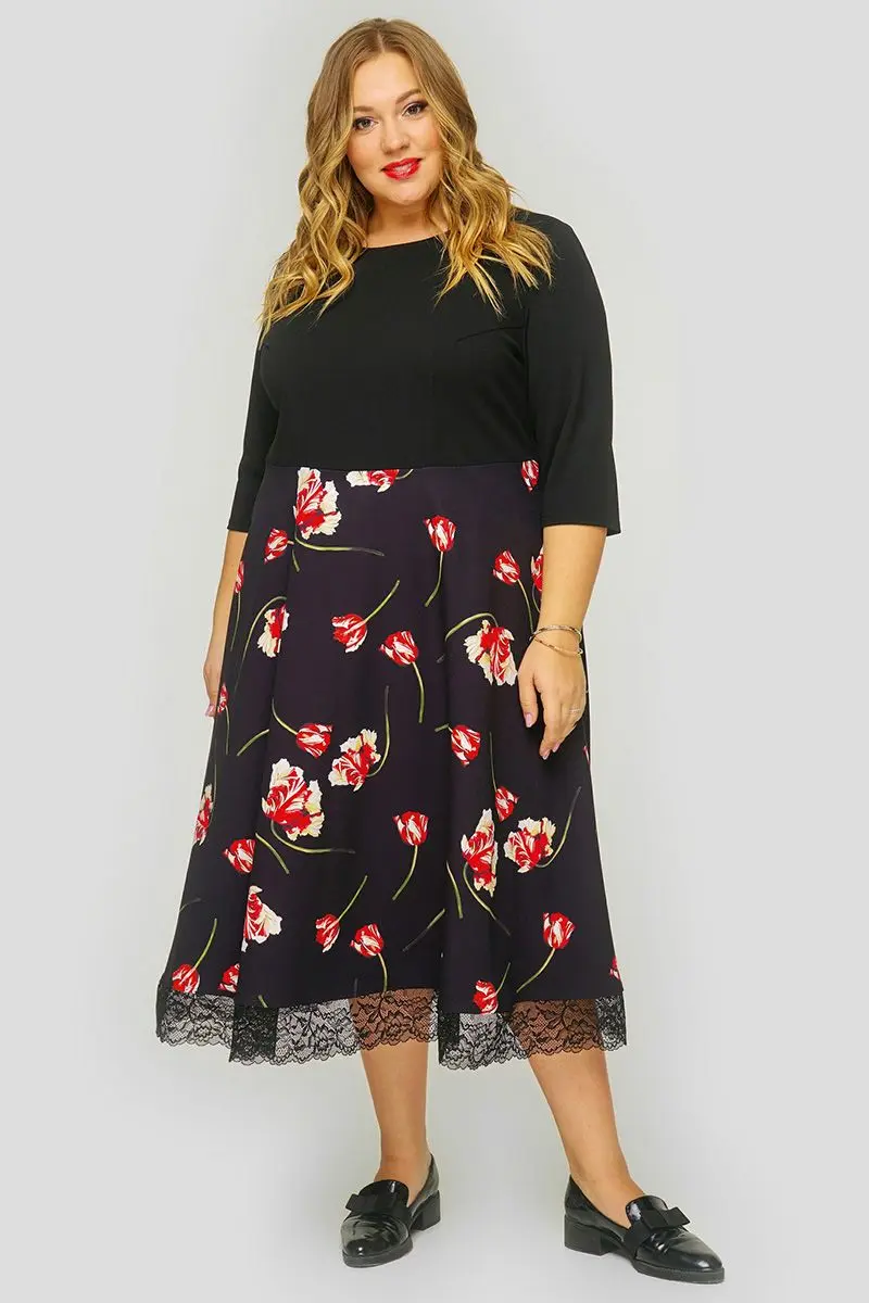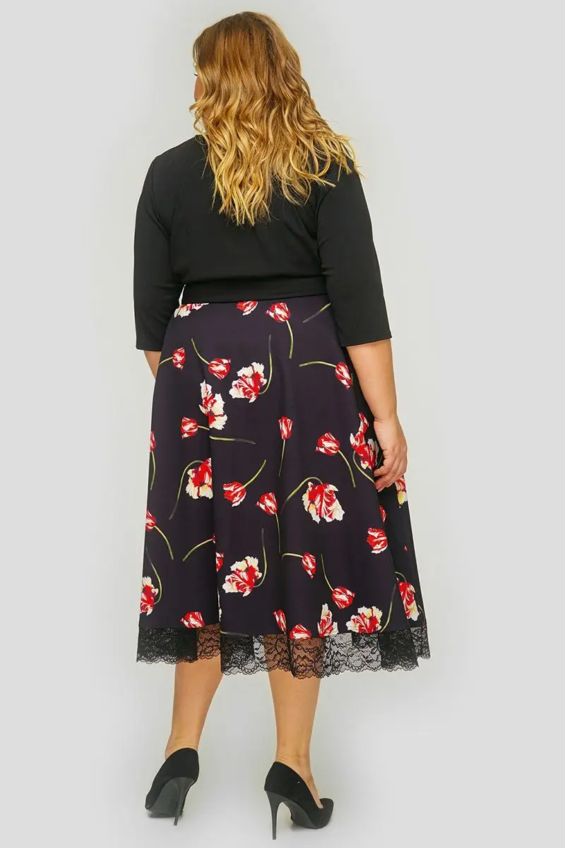 Цвет: верх черный, юбка (джерси, принт тюльпаны) мультиколор.