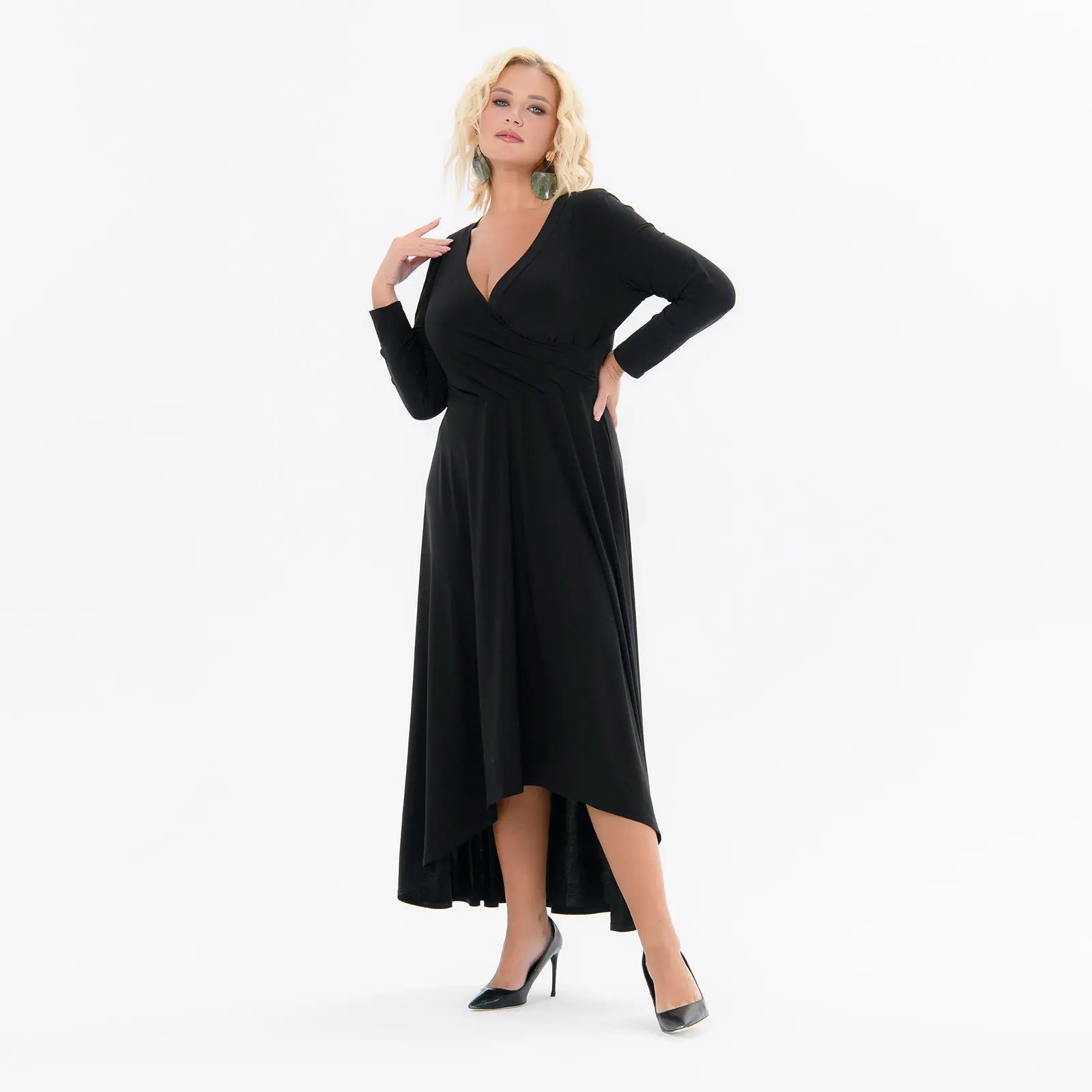 Платье приталенное, с асимметричным низом, лиф с запАхом, черное
