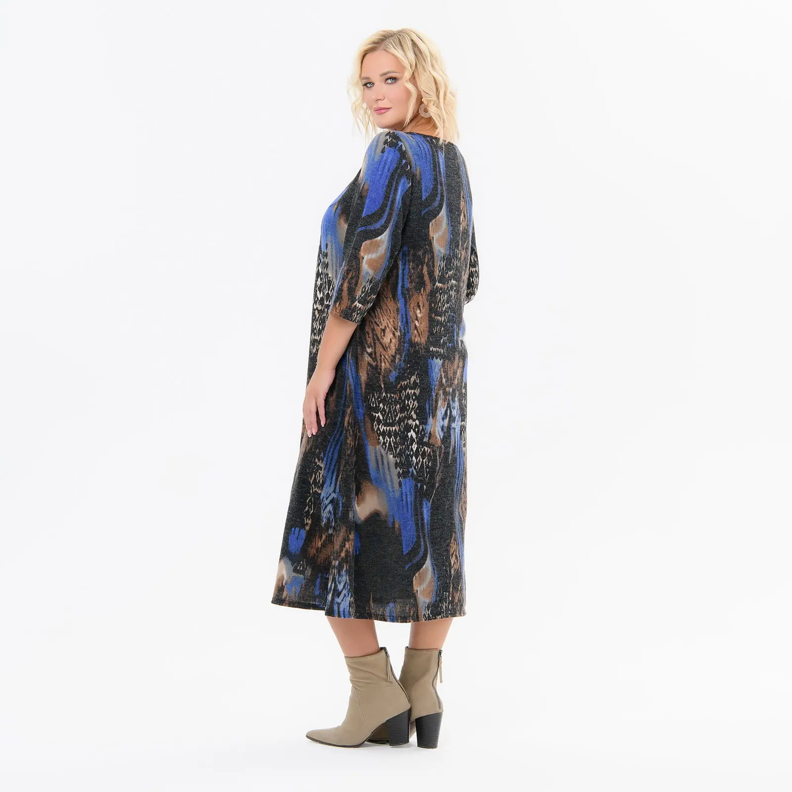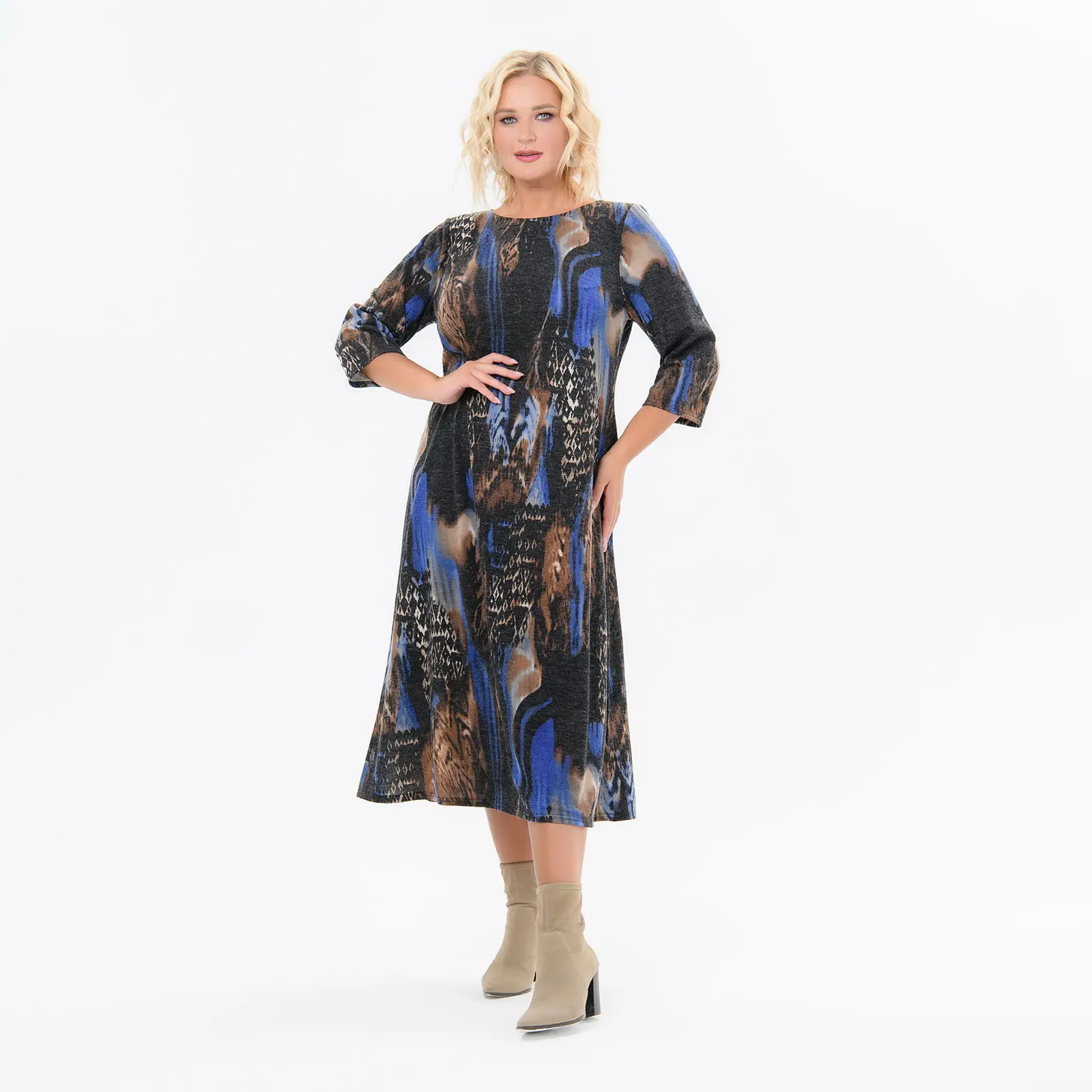 > Платье миди, полуприлегающего силуэта, джерси - ангора, принт "фантазия"