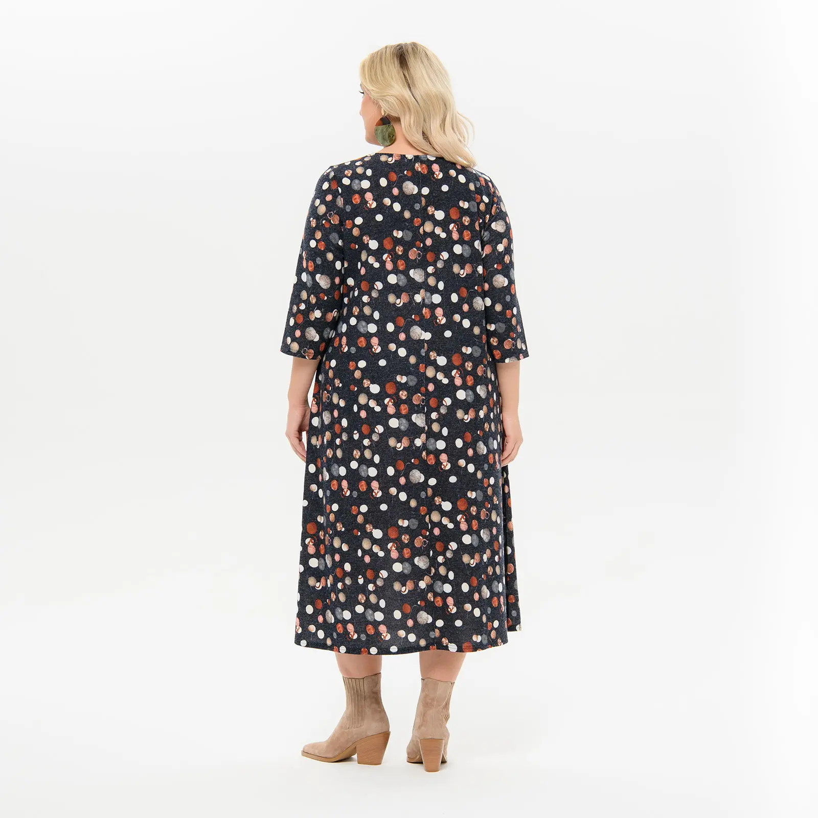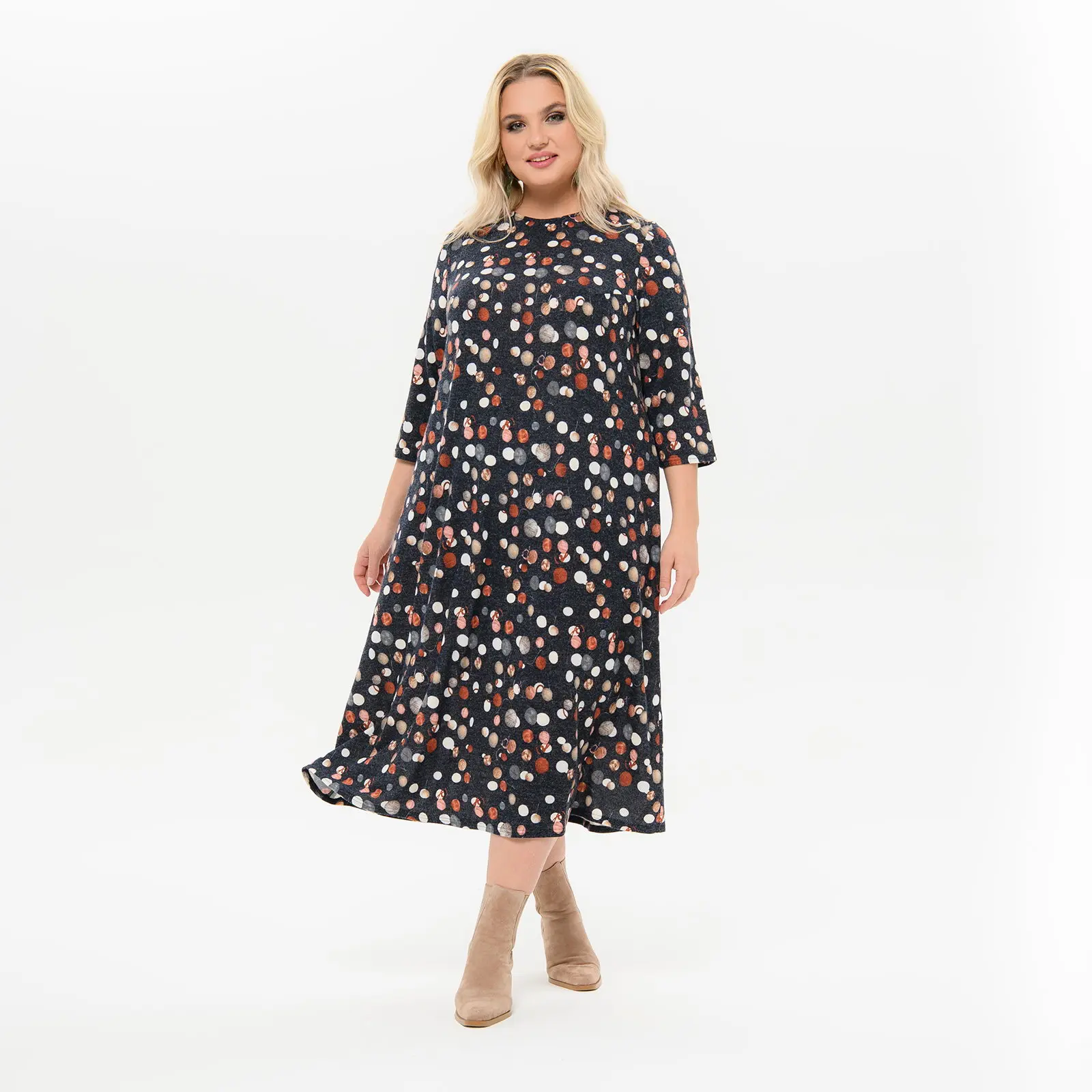 Платье миди, полуприлегающего силуэта, джерси - ангора, принт "праздник"